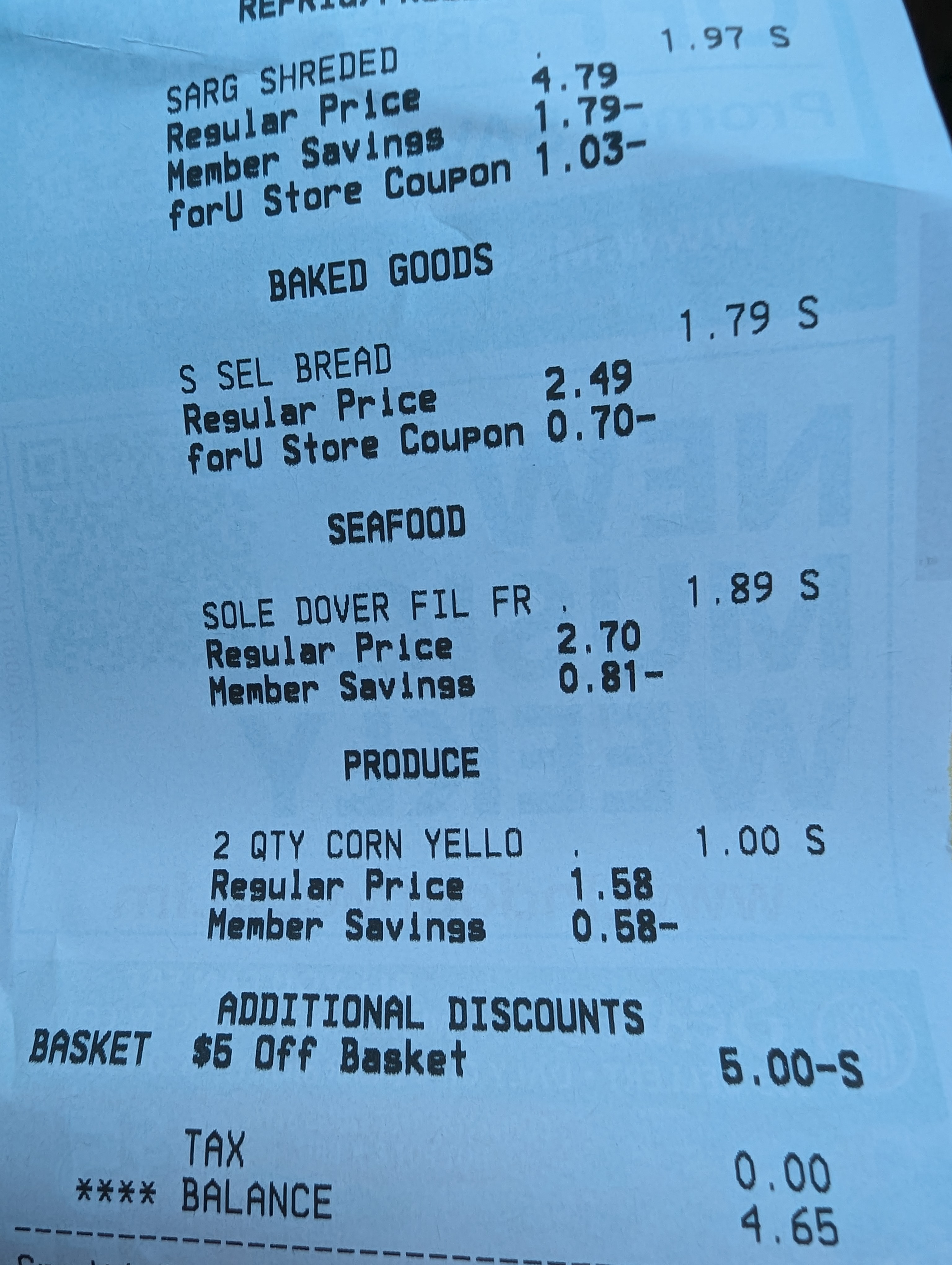 앱다운로드 회원: 가장 많은 품목 세일적용 및 디지털 한정 쿠폰 혜택 (영수증에 for U savings 라고 표기된 부분)