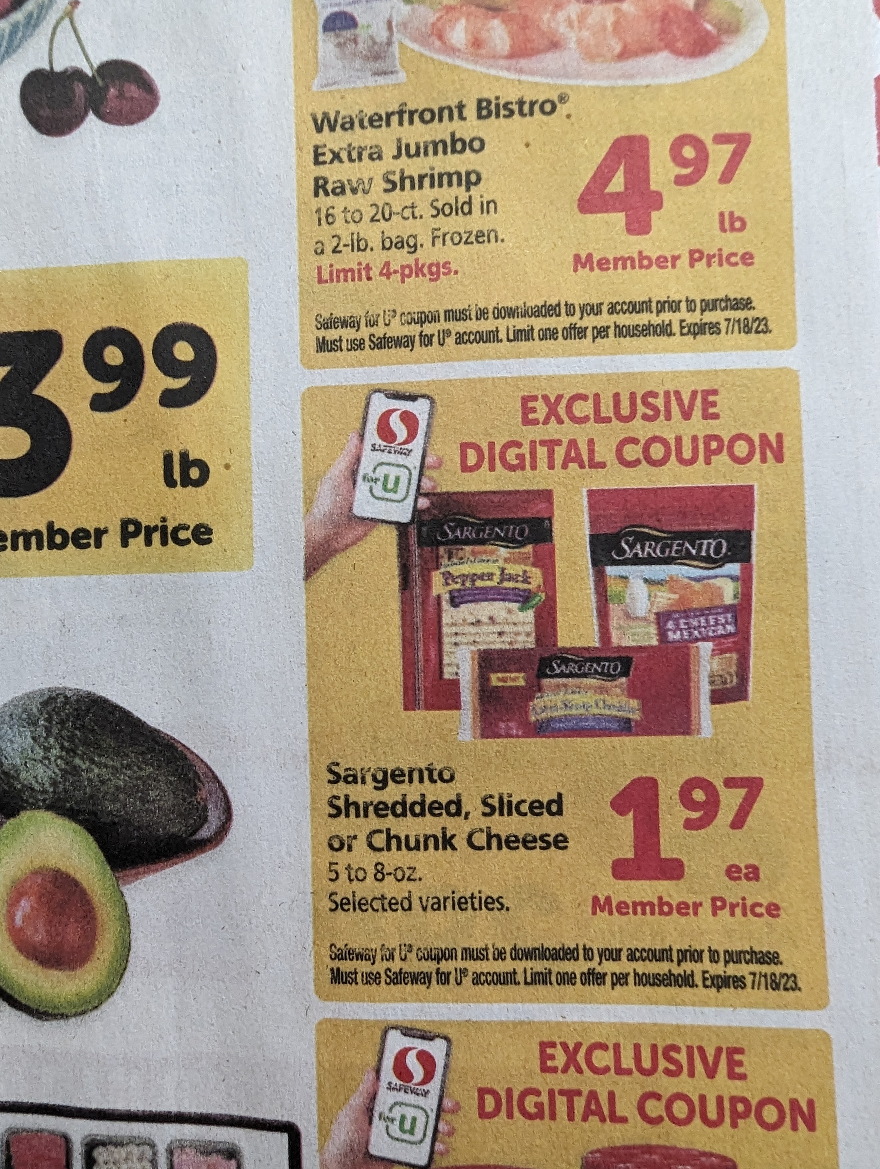 세이프웨이 광고는 아닙니다만 여기는 회원가입을 해야 쿠폰 할인이 적용되는 곳이에요. 일반 종이 쿠폰과 별개로 앱 전용 디지털 쿠폰이 쏠쏠하기도 하고요.