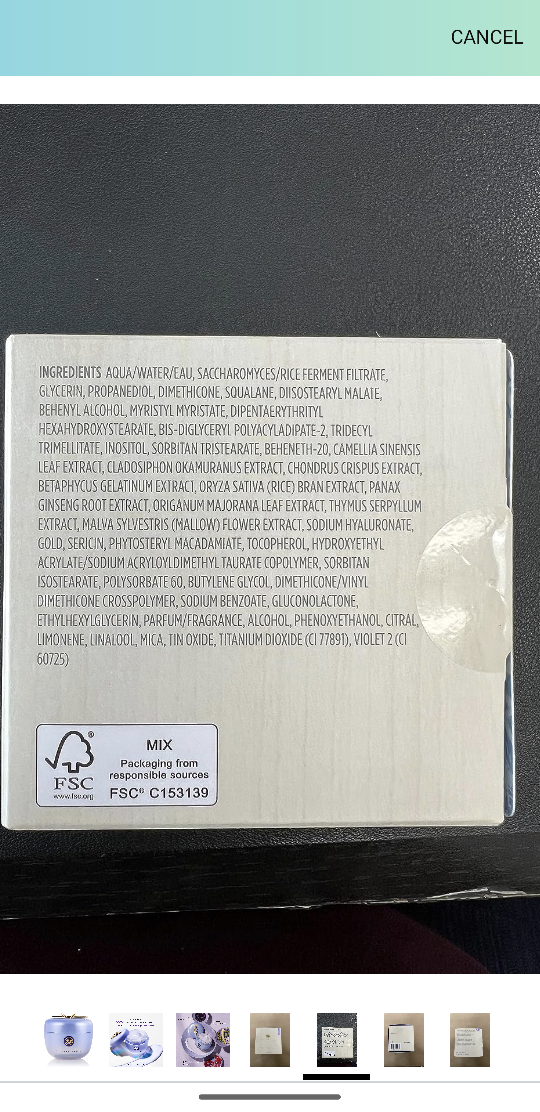 역시 전성분 마지막에 violet 2이 들어가서 연보라색 크림이 된 거에요. 향료도 들어갑니다.