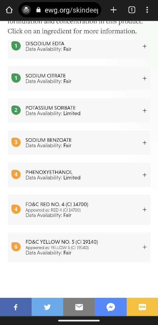 EWG 등급 무려 7등급이에요. 50밀리리터에 72달러를 주고 7등급 크림을 살 생각은 들지 않아요.
