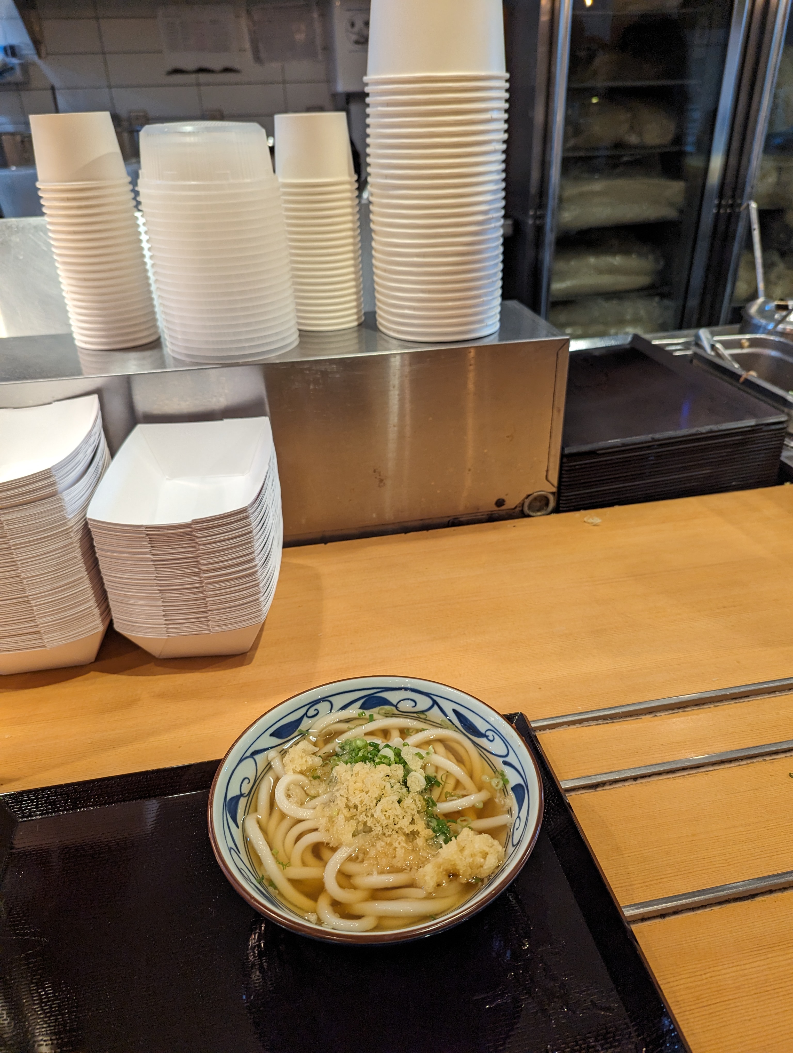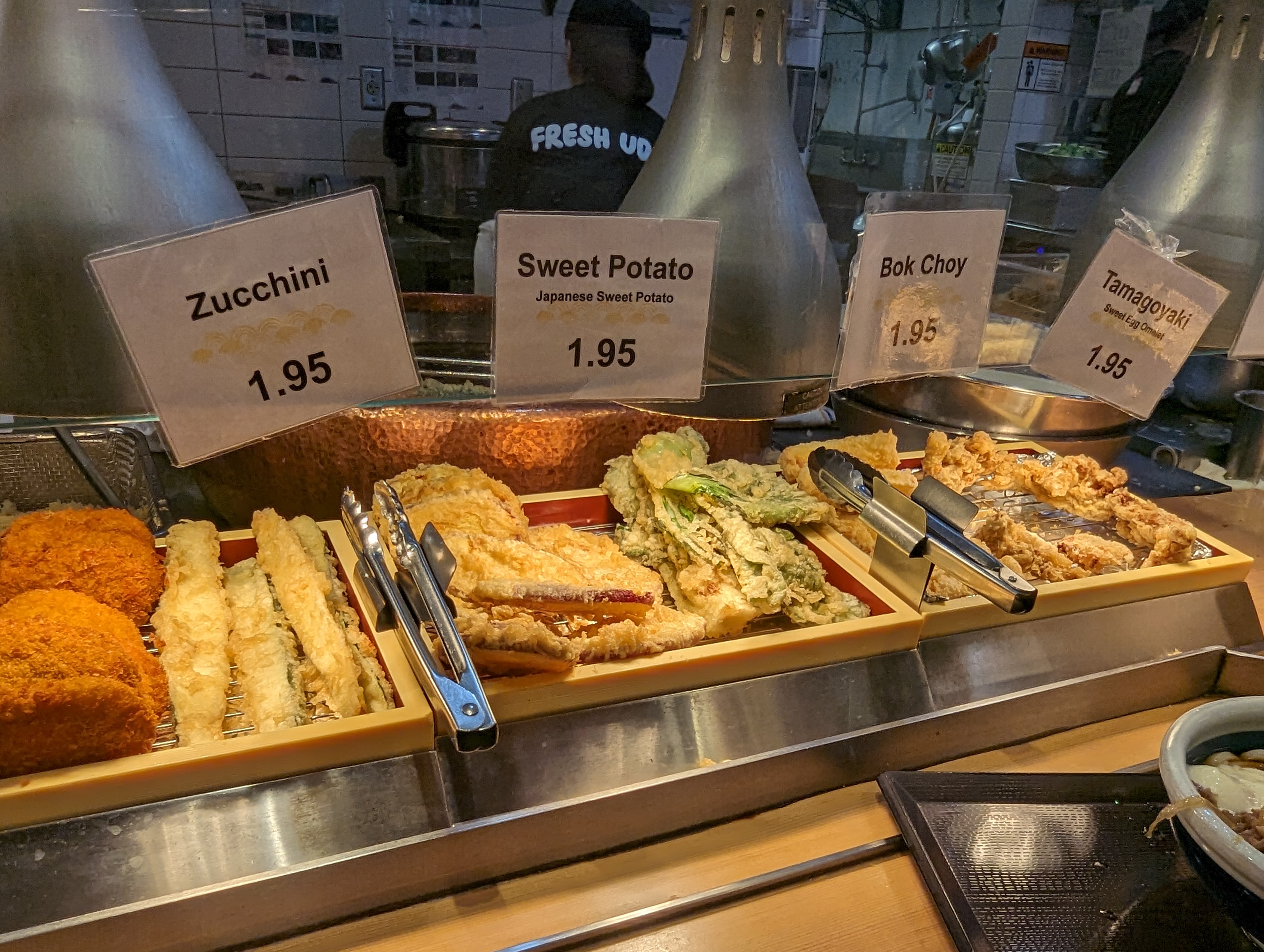 줄서서 주문하는, 약간 카페테리아 스타일이라고 보시면 됩니다. 우동만 주문해도 되고 우동과 텐푸라를 같이 주문도 가능해요. 작은 부분이지만 우동을 담아 주기 전 그릇을 한번 뜨거운 물에 헹궈주더군요. 이러면 더 따끈한 상태의 우동을 받을 수 있는데요, 미국으로 오퍼레이션을 옮기면서 신경을 많이 쓴 느낌이 들었어요.