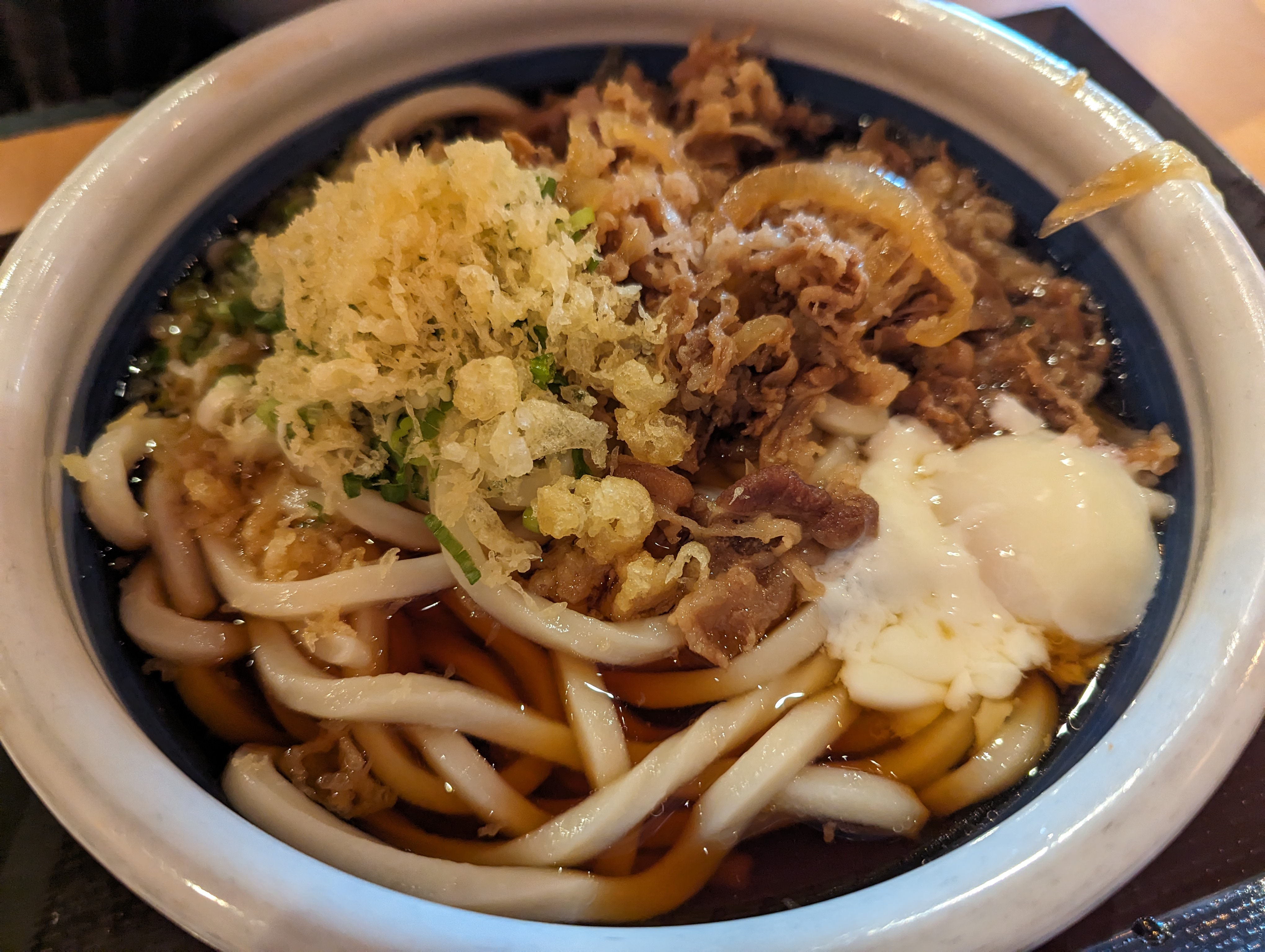 이건 니쿠타마 냉우동 라지사이즈입니다. 냉우동의 장점은 우동면이 끝까지 쫄깃하다는 것이죠. 고기맛은 달고 짭잘한 요시노야 덮밥 토핑 생각하시면 됩니다.