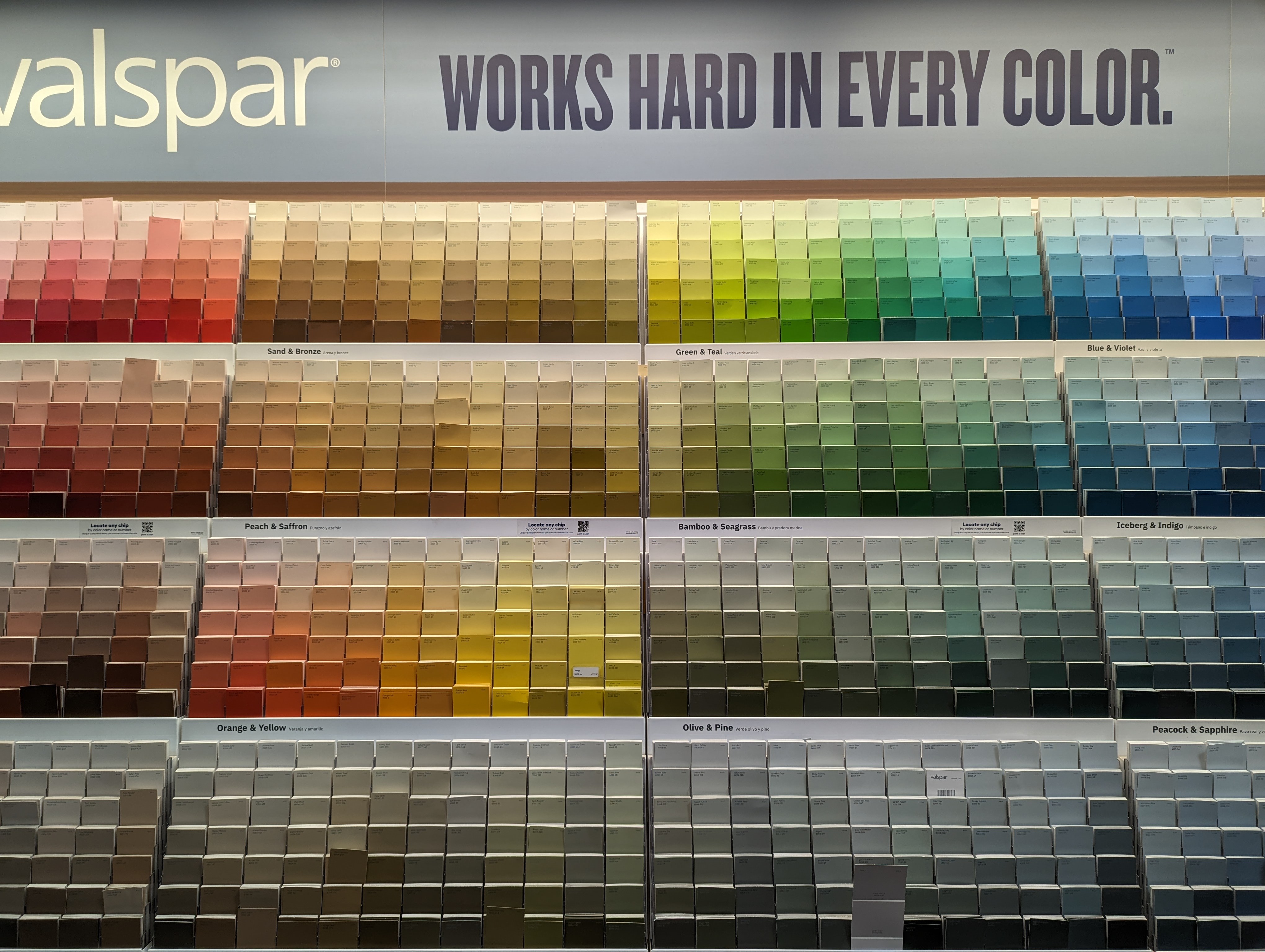 여기는 valspar 의 페인트 코너입니다. 이렇게 페인트 샘플이 좌르륵 다 있어요. 이건 취향껏 골라가시면 됩니다.
