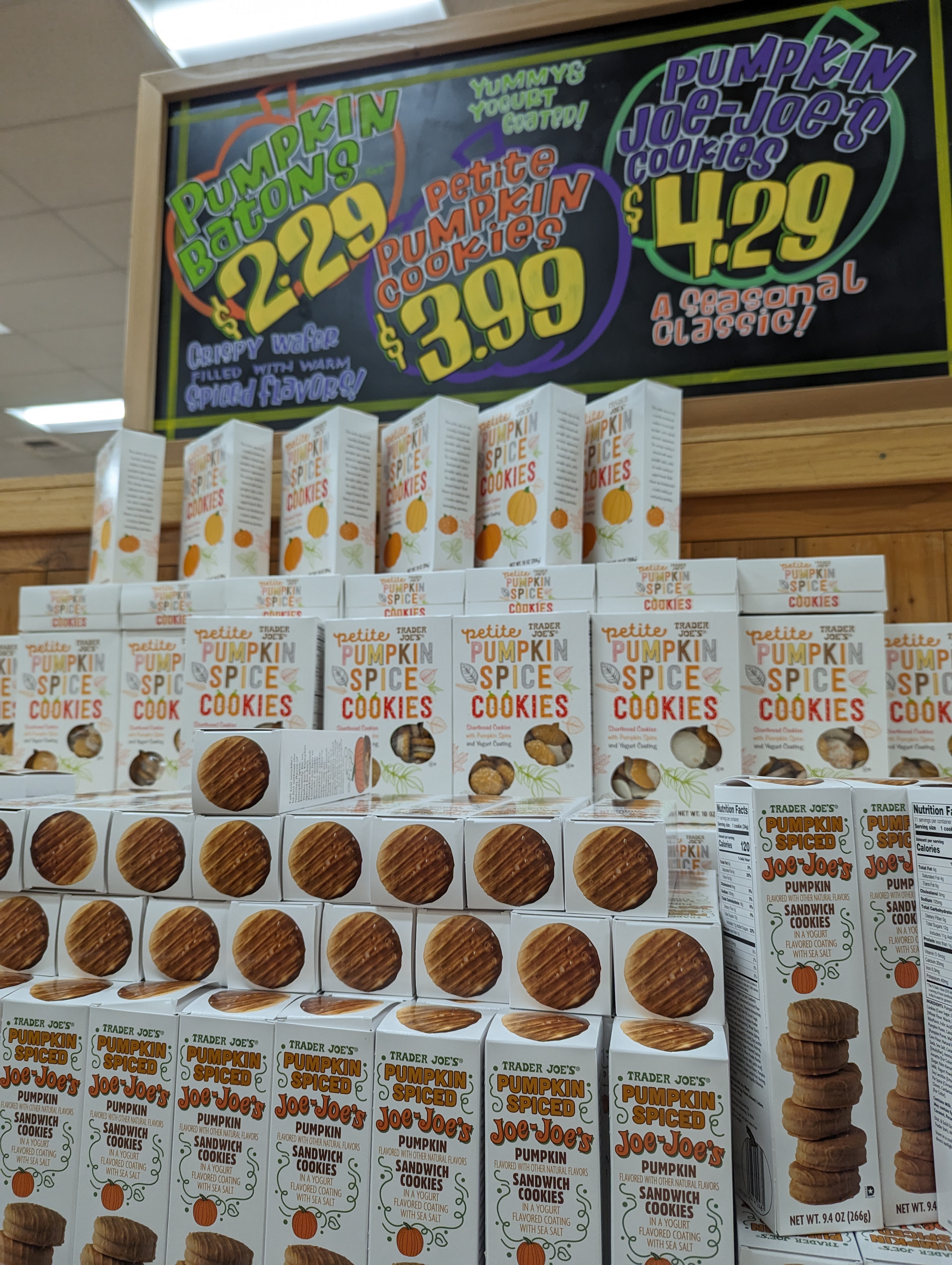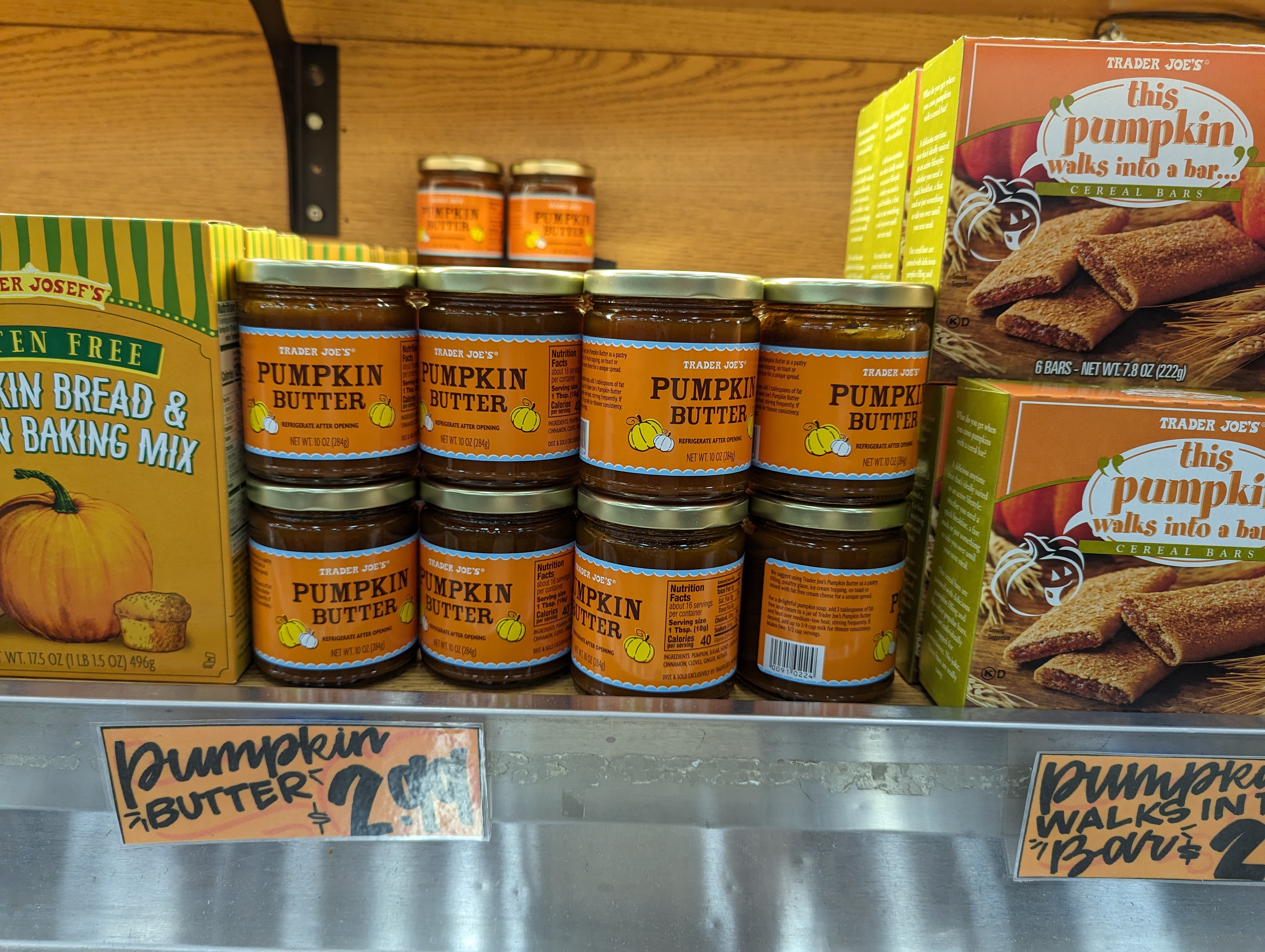 펌프킨 조조스, 펌프킨 스파이스 배톤, 펌프킨 모양 초콜렛, 펌프킨 스파이스 프렛첼, 펌프킨 그래놀라 바 등 펌프킨 좋아하시면 가을의 트레이더조스는 천국이죠.