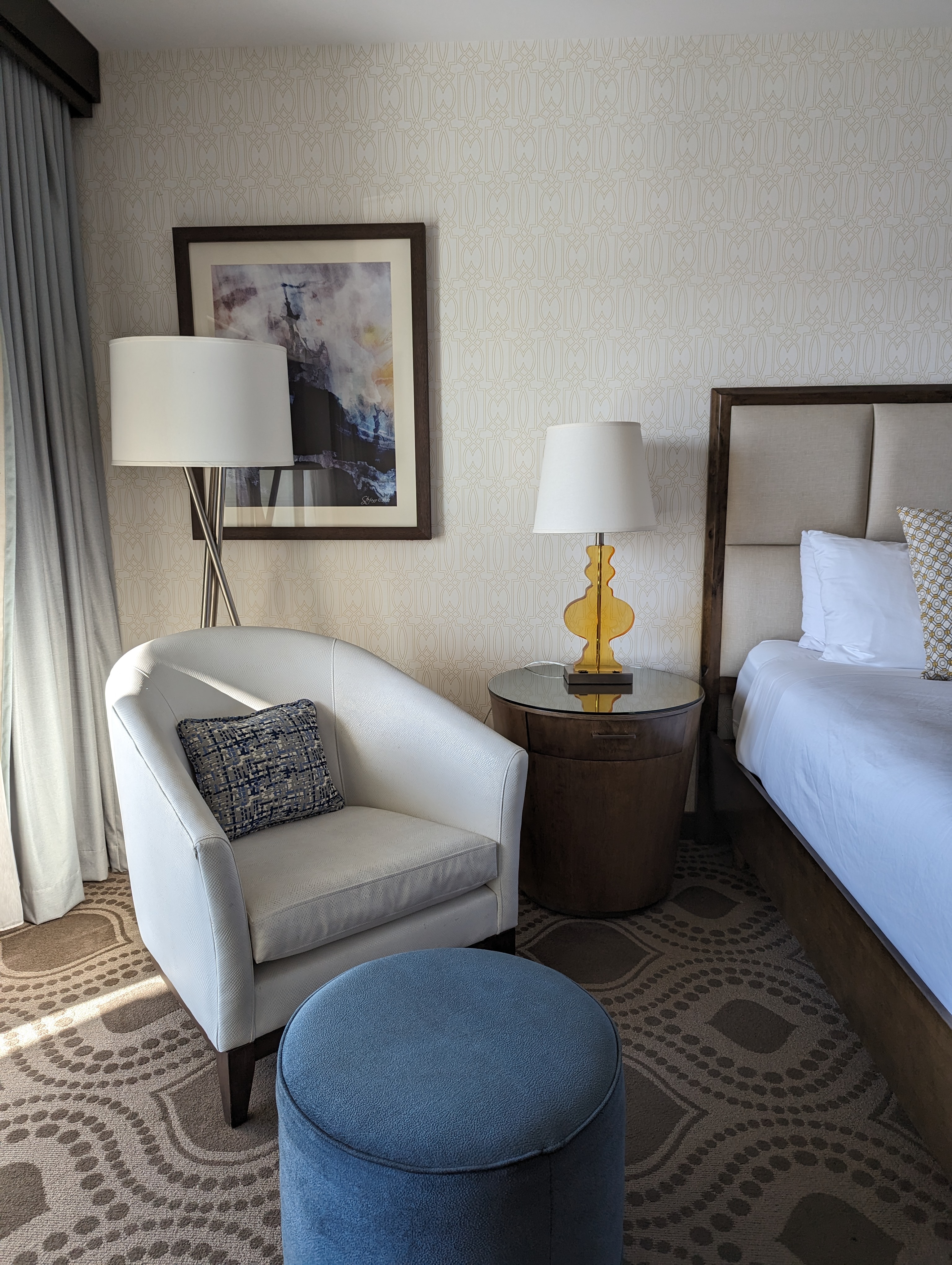 LA의 단점은 교통체증이 심하다는 점, 교통이 안좋을 때는 우버도 잡기가 어렵다는 점인데요, 차를 렌트하셨다면 하루이틀 정도 다운타운을 벗어나 마리나뷰 보면서 힐링하기에 좋습니다. 호텔 자체는 예쁜데 호텔 안에 식당이 딱 하나가 있고 주변에 다 마리나 뿐이긴 해요. 조식부페 이런 것도 없죠. 그래도 10분정도 걸어나가시면 인기 스시맛집 Sugarfish, Ralphs 슈퍼 및 세포라, 쉐이크쉑, 스타벅스, California pizza kitchen과 치폴레까지 인기 맛집및 쇼핑몰이 다양하게 있어서 실속있게 시간 보내실 수 있을 거에요.