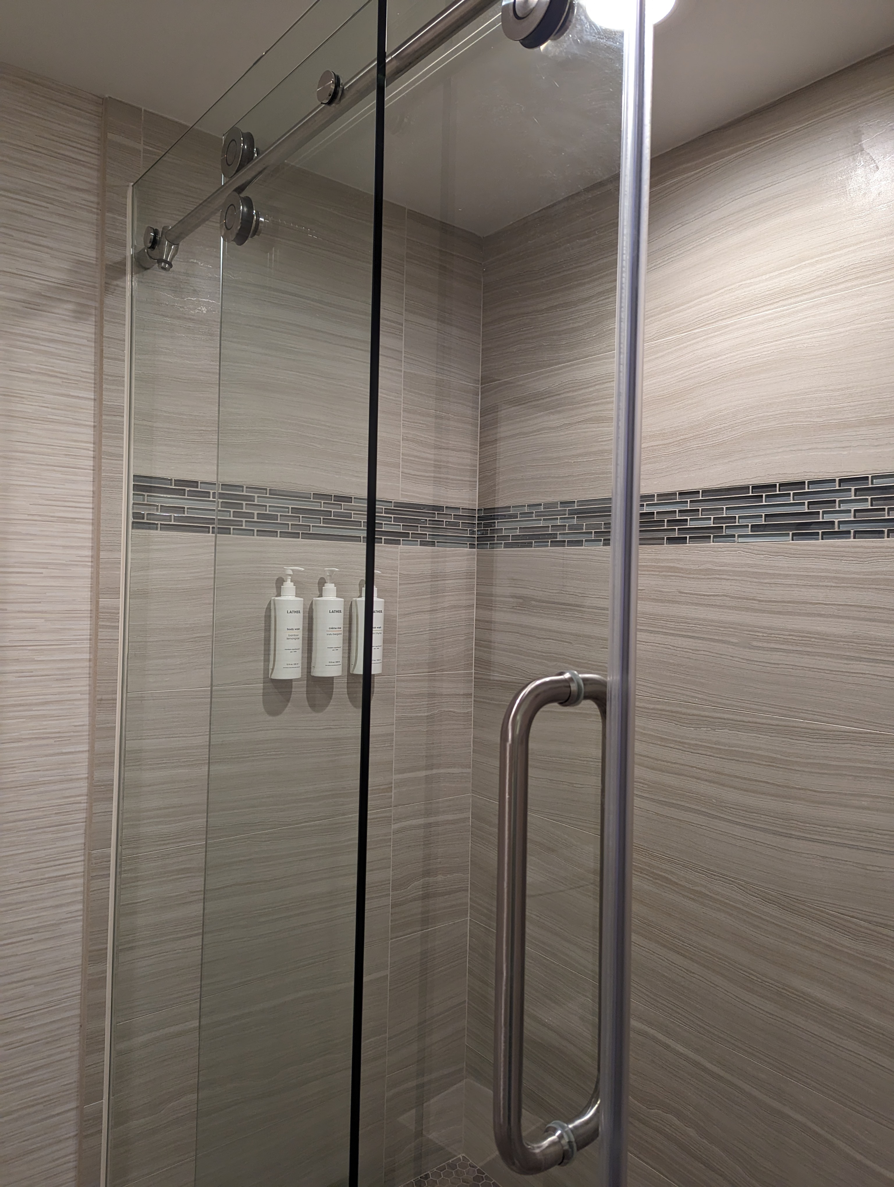 샴푸 컨디셔너 바디워시는 다 대용량으로 준비되어 있고 Lather라는 호텔용 브랜드에요. 인공향료를 배제하고 아로마오일로 향을 내서 좋긴 한데 좀 모발이 뻑뻑해지는 느낌은 있어요. 비누랑 바디로션은 미니사이즈로 줍니다.