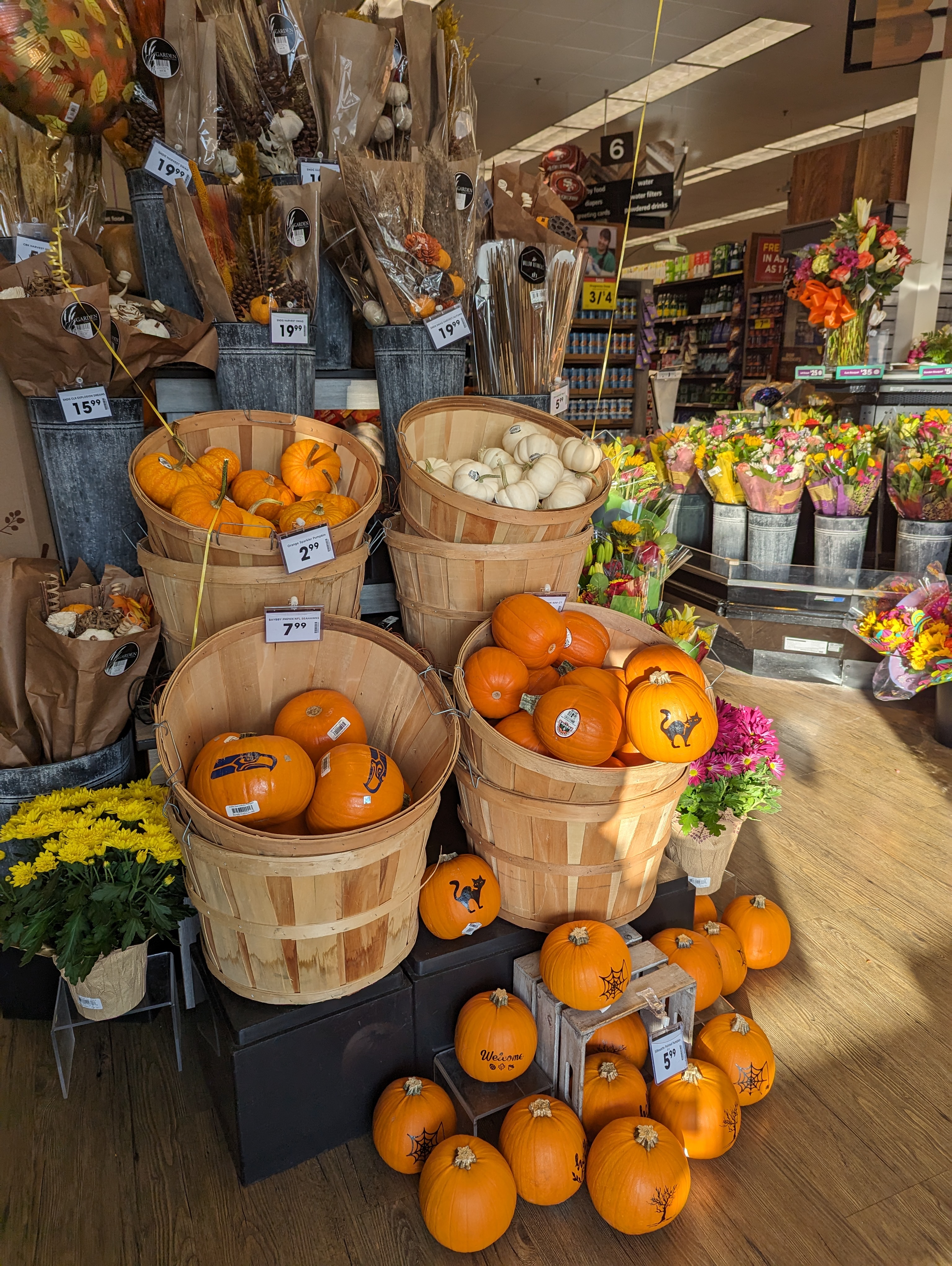 들어가자마자 귀여운 호박들이 반겨주네요. 미국에서 파는 호박은 주로 장식용 혹은 jack-o-lantern 카빙용입니다. 실제로 먹어본 적은 없어서 맛보장은 못해드려요.