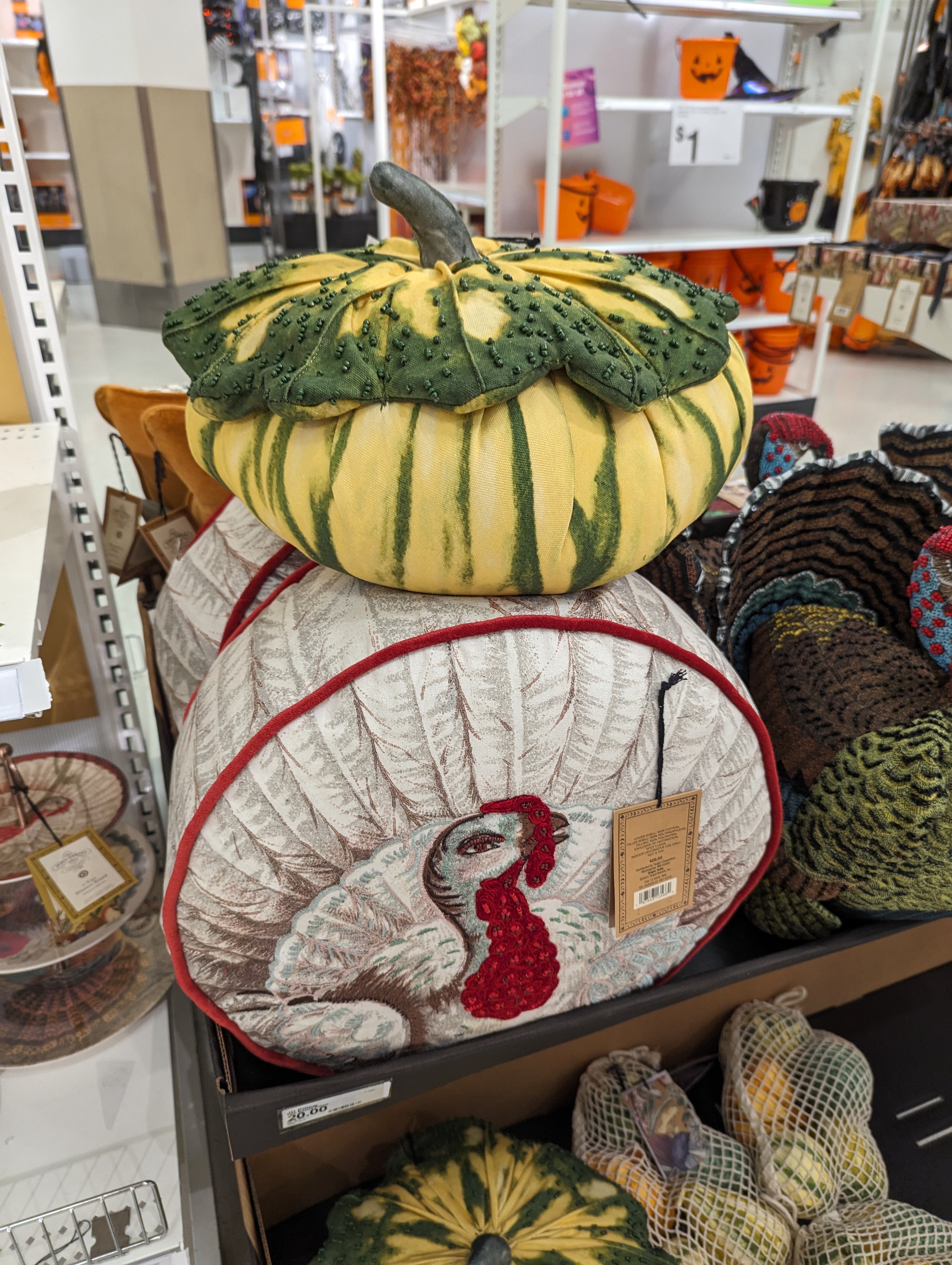 동그란 쿠션과 호박모양 쿠션도 참 귀엽죠. 각각 20달러에요. 미국은 호박 모양, 색, 크기가 참 다양하게 많이 나와서 신기해요.