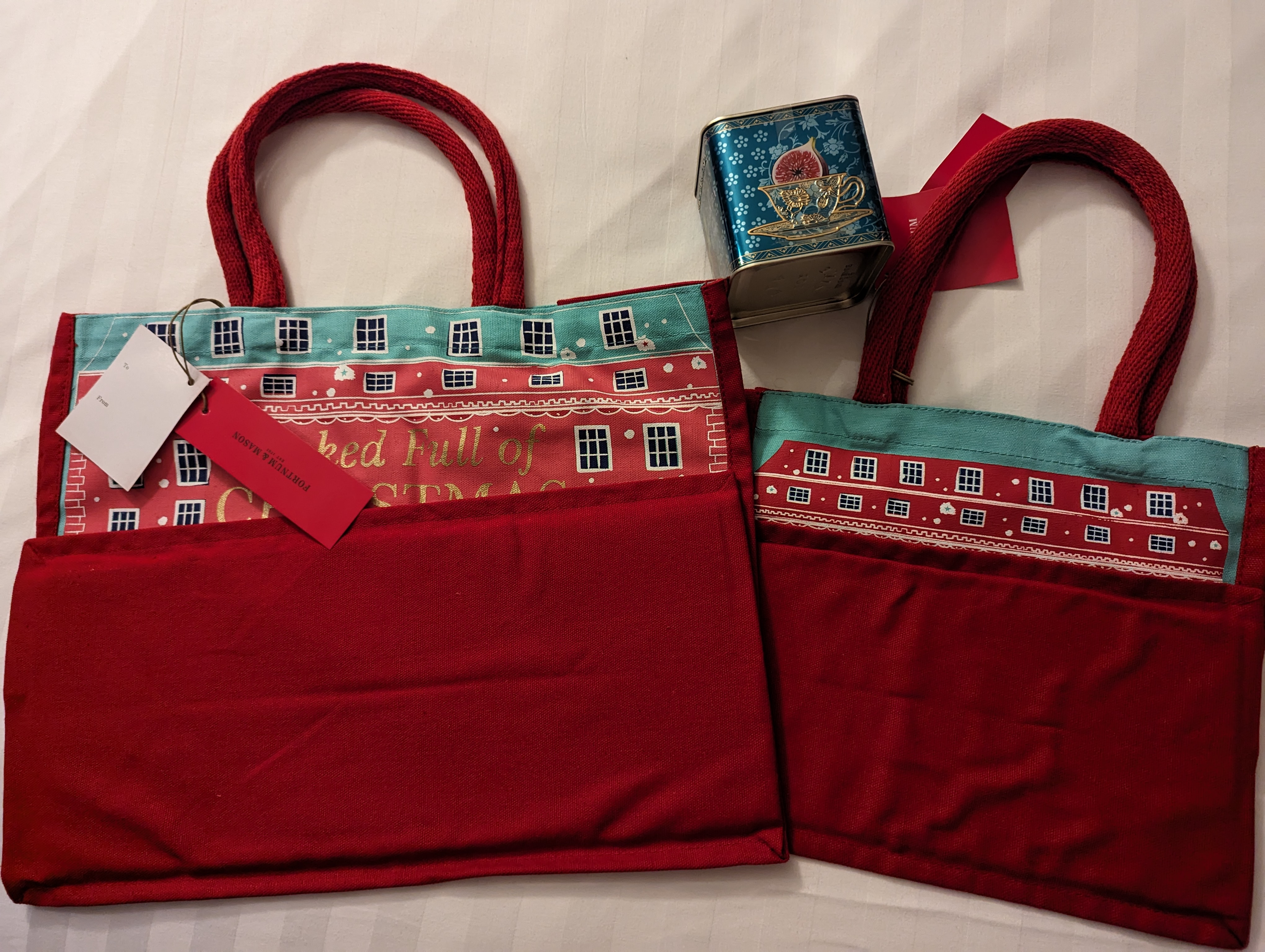 프린트 퀄리티가 매우 훌륭하고 크리스마스 지나도 들고 다니고 싶은 예쁜 토트입니다. 넓직하고 실용적이라서 장보러 갈때 잘 쓰고 있어요. 노트북이 들어가는 크기이긴 한데 지퍼가 없기도 하고 틀이 잡힌 가방은 아니라서 노트북 가방으로는 좀 애매합니다.