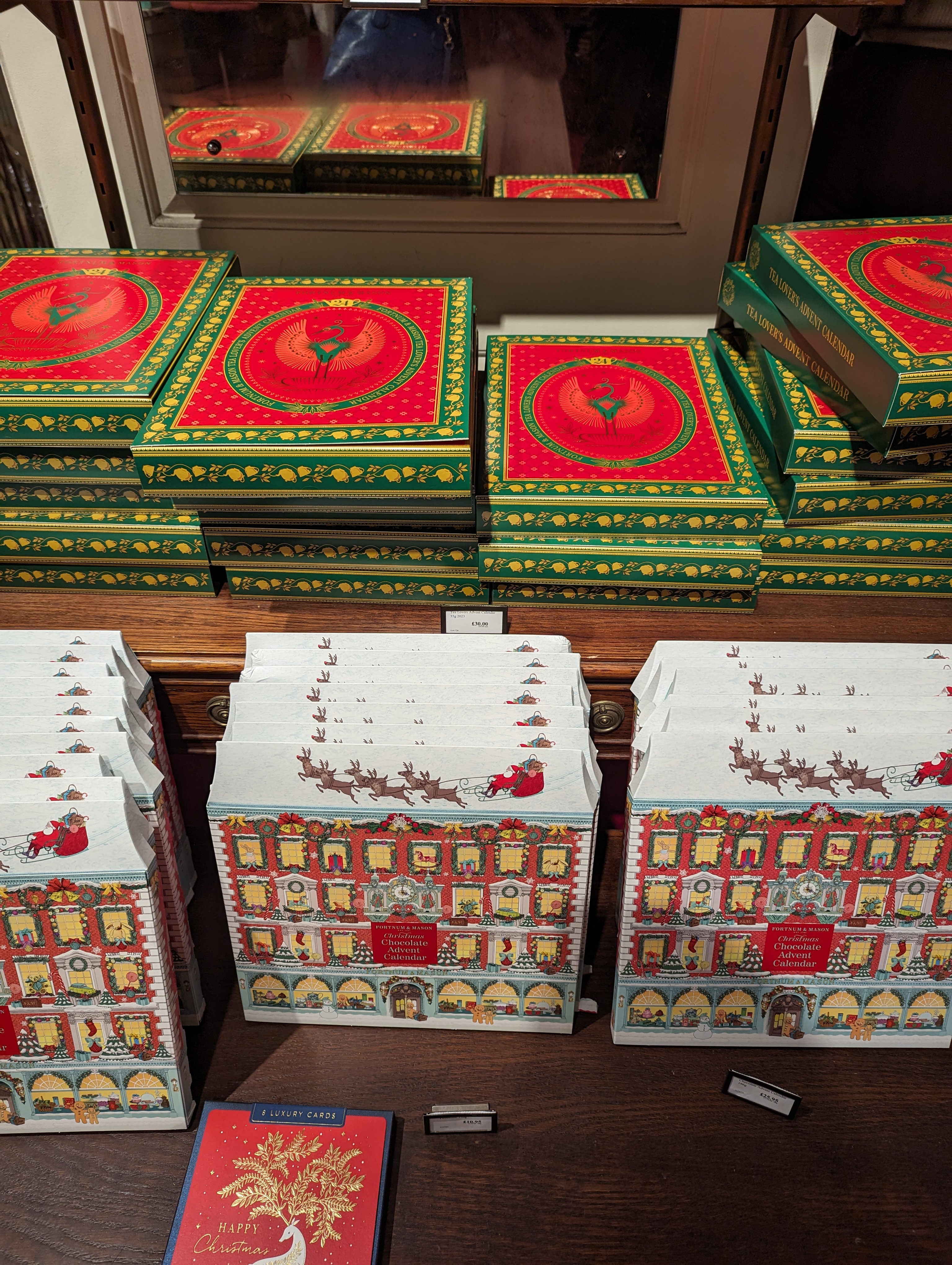 내부 크리스마스 트리도 보기 좋아요. 피카딜리점은 정말 사람이 많아서 계산도 시간이 좀 걸리고 구경도 좀 전투적으로 하셔야 합니다만 St Pancras 역 안에 있는 스토어는 좀 더 여유가 있었던 것 같아요. 이것도 시간대에 따라 조금 다르지만요 그래도 품목은 피카딜리가 월등히 많긴 해요.