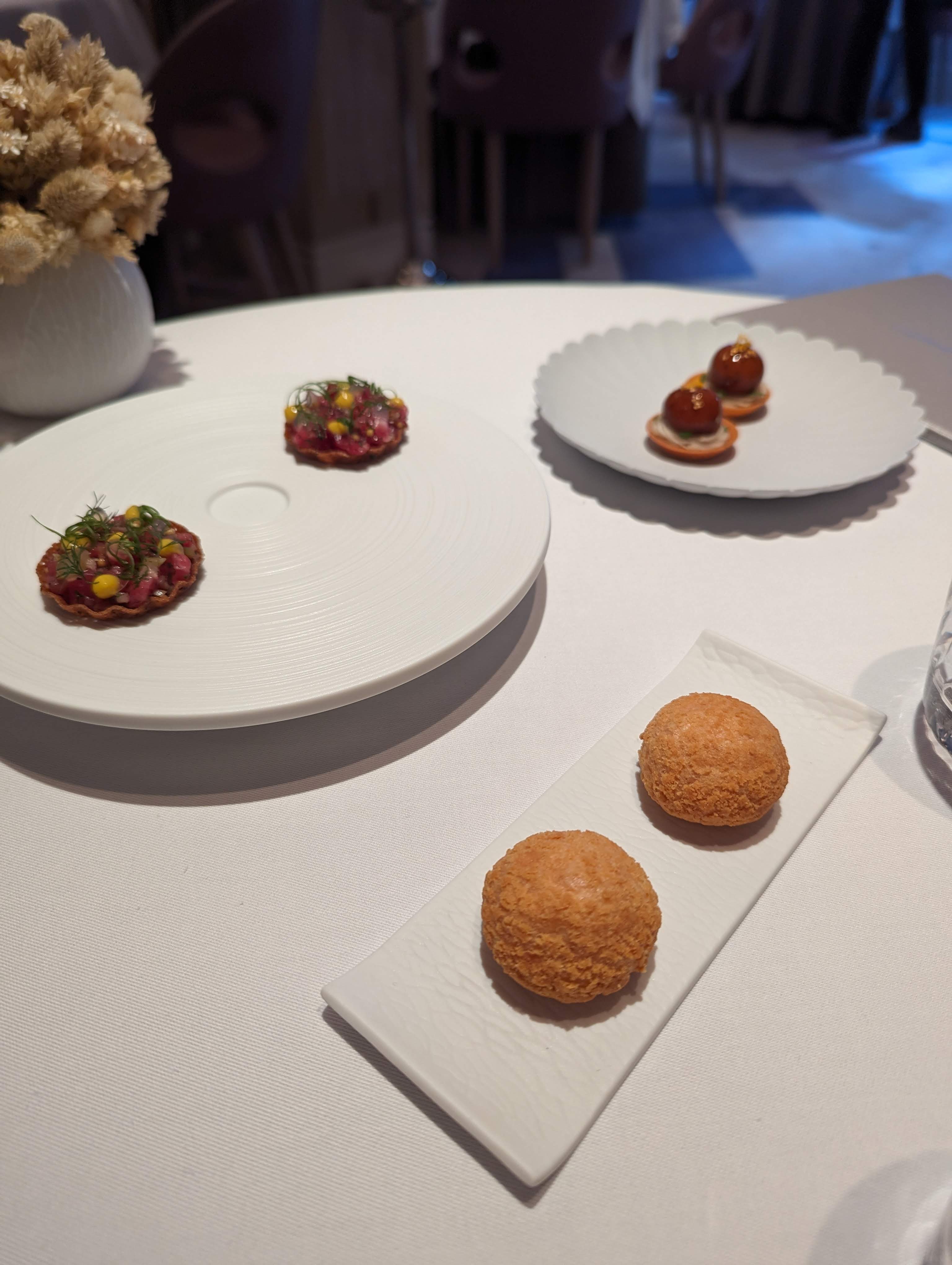 알라카르트 메뉴도 있습니다만 여길 언제 다시와보나 싶어서 코스를 선택했고요, 세금이 20퍼센트, 서비스차지가 15퍼센트 추가되어서 합 550파운드 정도가 나왔네요. 와인은 주문하지 않은 식사입니다. 미슐랭 3스타 및 셀레브리티 셰프 레스토랑 중에서는 양심적인 가격에 속한다고 생각해요. 정말 비싼 곳은 코스당 500파운드를 훌쩍 넘는 곳들도 있으니까요. 게다가 런던의 살인적인 물가를 생각하면 더더욱 괜찮게 느껴지기도 합니다.