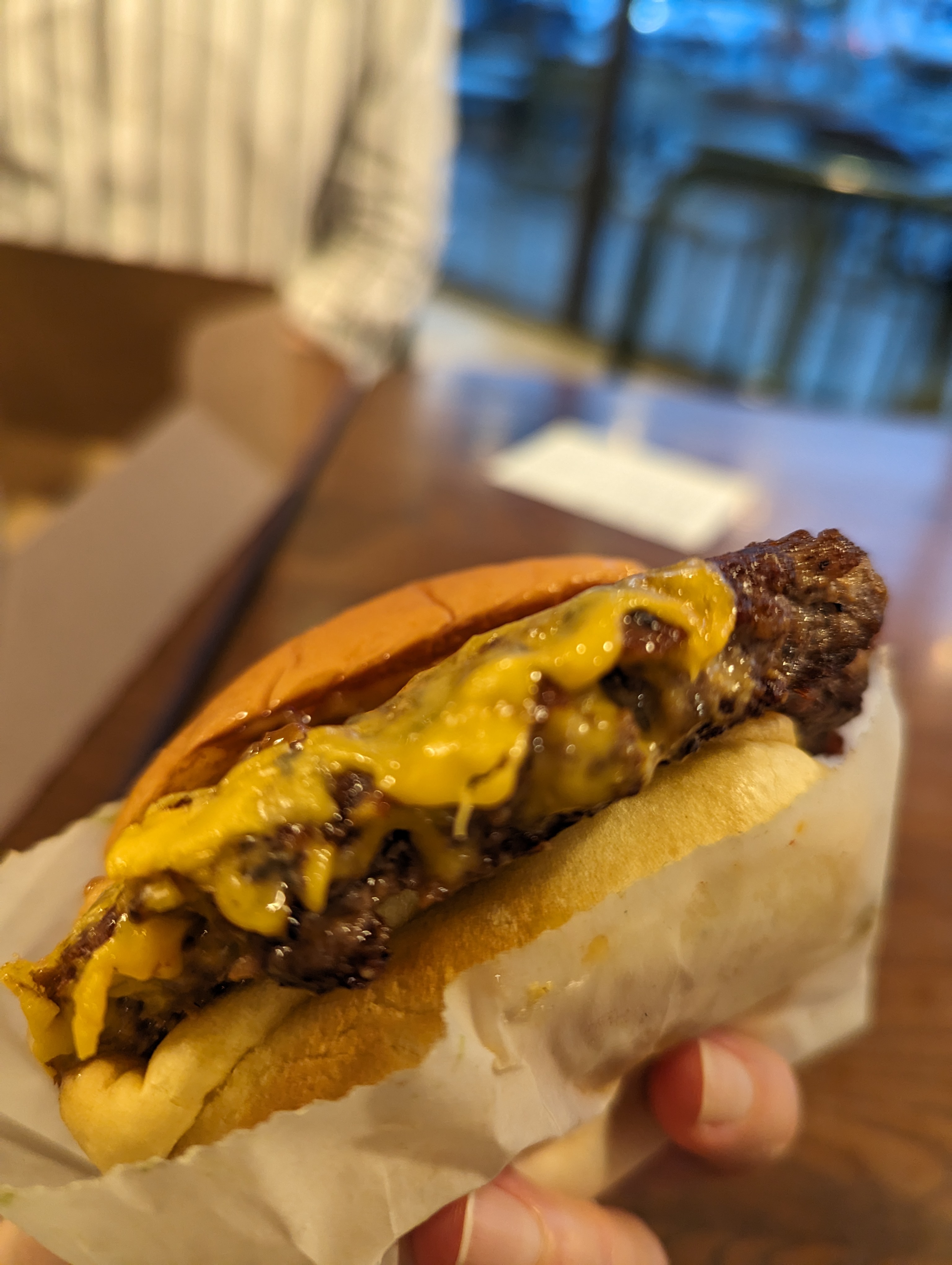 7달러 선의 기본 쉑버거보다 1달러 정도 비싼 가격이고요, 세금까지 하면 9달러 정도 됩니다. 사진과 굉장히 다른 모습이지만 (...) 일단 패티가 큼직한건 좋은 것 같아요. 솔직히 기대를 좀 하고 먹어봤는데 엄청 맛이 짭니다. 저 짠거 좋아하는 사람인데 제가 먹어도 너어어어어어무 짜요. 고기 질은 훌륭한데요, 간장과 소금을 반만 넣어도 되었을 맛이어서 살짝 당황했어요. 한국 바베큐 맛을 내려고 나름 파도 송송 썰어준 것 같은데, 글쎄요, 아마 짠맛을 좋아하는 현지인들은 좋아할 수도 있겠어요. 개인적으로 롯데리아 데리버거가 그리워지는 맛입니다. 이 버거보다 차라리 기본 쉑버거를 먹는게 만족스러울 것 같아요. 하지만 일단 메뉴 개시가 된지 얼마 되지 않았고 점바점 차이가 있지 않을까 싶긴 하네요. Onion crisp도 들어있다고 하는데 양이 좀 적은 편입니다. 버거를 먹다가 오 뭔가 크리스피한게 있는거 같다, 라고 3초 생각하고 말았어요. 솔직히 다시 주문할 생각은 없습니다.