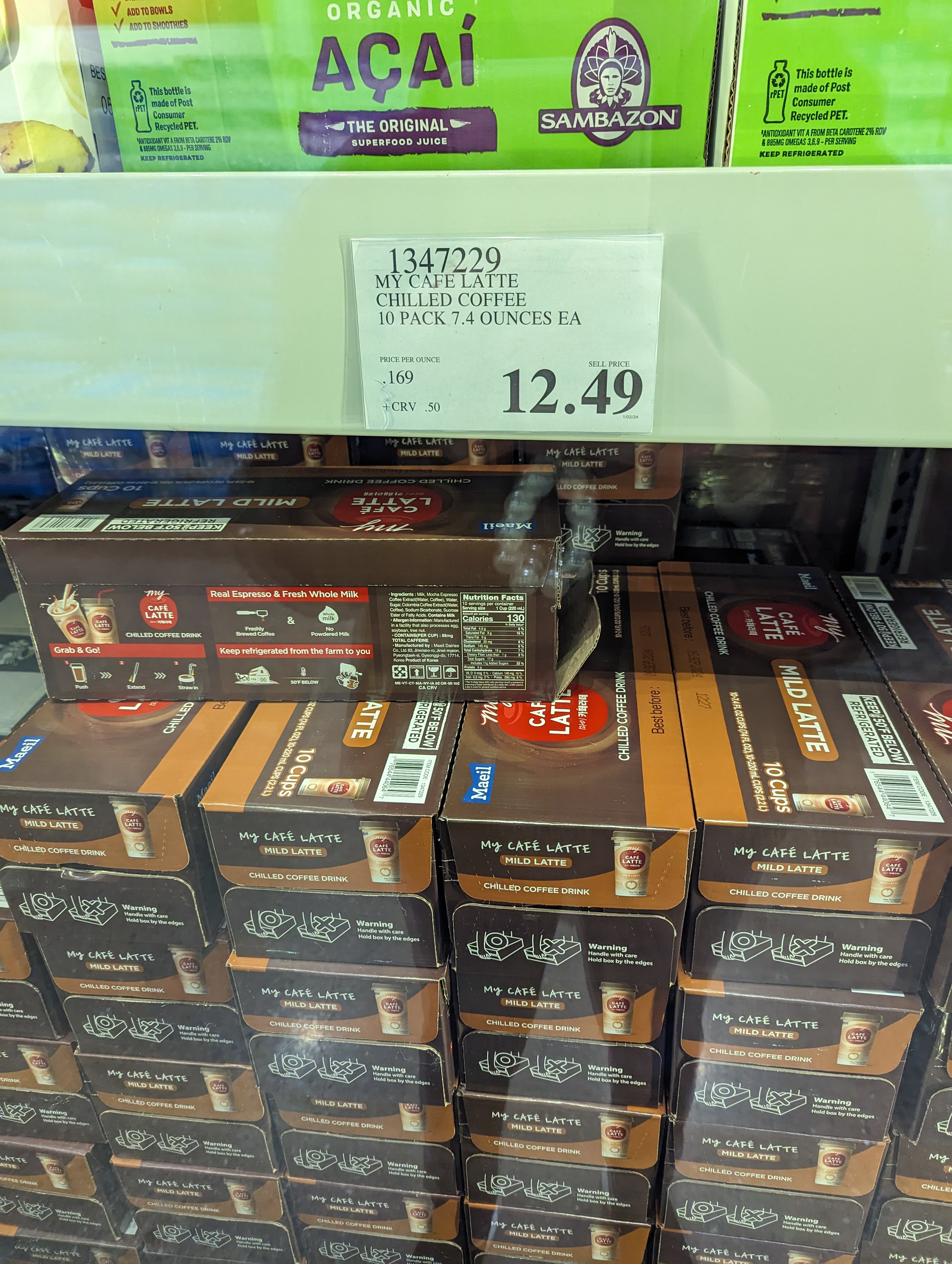 이건 냉장 코너에서 파는 매일유업 카페라떼입니다!! 한국에서는 너무 쉽게 구할 수 있지만 미국에서는 보기 힘든 터라 굉장히 반가웠어요. 10팩에 12.49달러는 좋은 가격같아요. 유제품이기도 하고 아마 미국 현지 생산이 아닐까 싶네요. 사실 저도 처음에는 이게 어디 제품인지 감이 잘 안왔어요. 한국 제품 요즘 인기가 워낙 많아서 Korean coffee 라고 큼지막하게 마케팅 하셔도 좋을 것 같습니다.