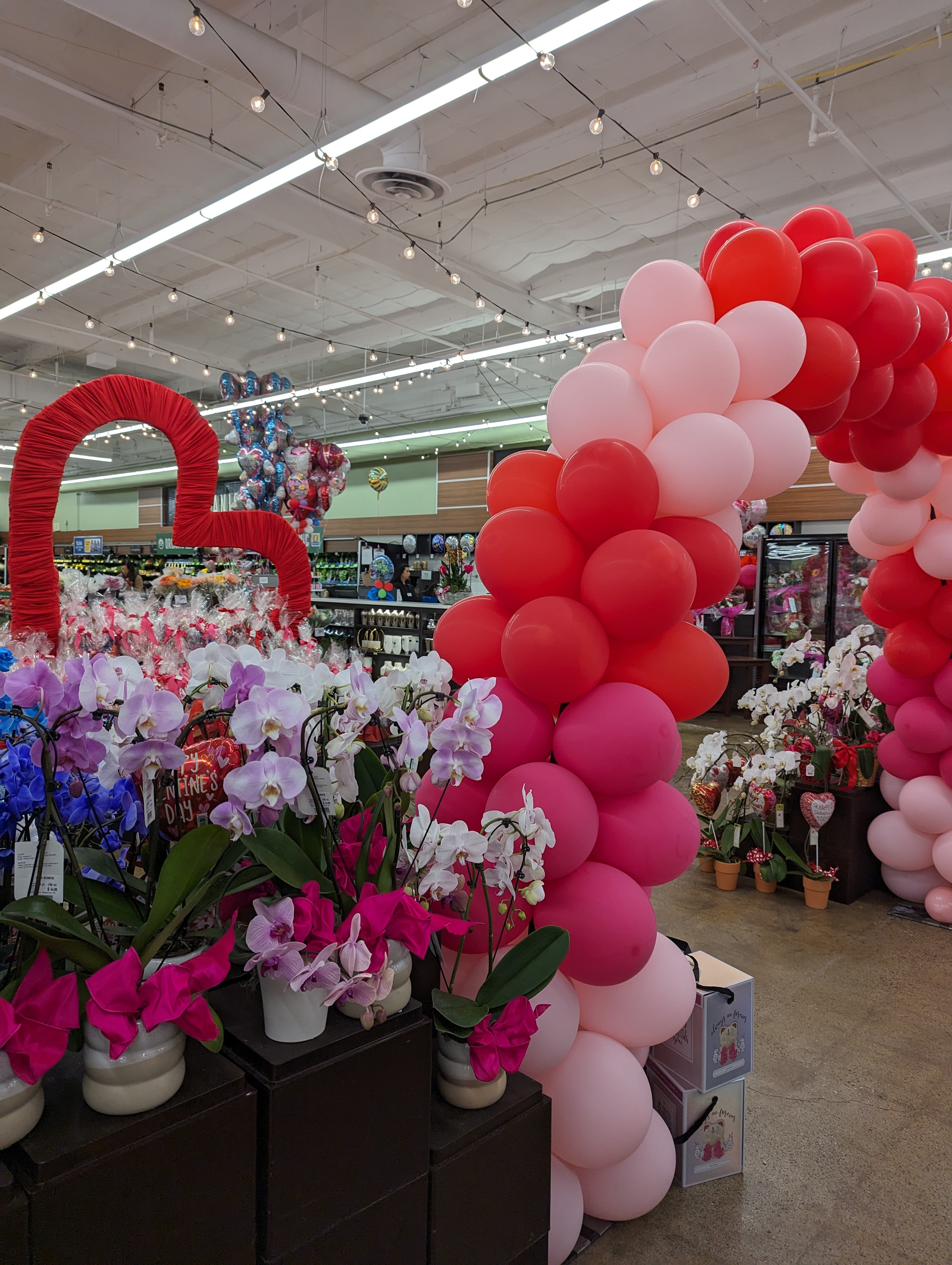 발렌타인 데이 풍선 장식도 엄청나요. 미국에 와서 놀랐던게 여기는 꽃집이 따로 많이 없는 대신 마트 안에 있는 꽃집이 괜찮더라고요. 발렌타인데이 당일이나 바로 전날에 아저씨들이 다들 마트에서 꽃을 하나씩 사가요. 트레이더 조스에도 꽃집 있습니다.