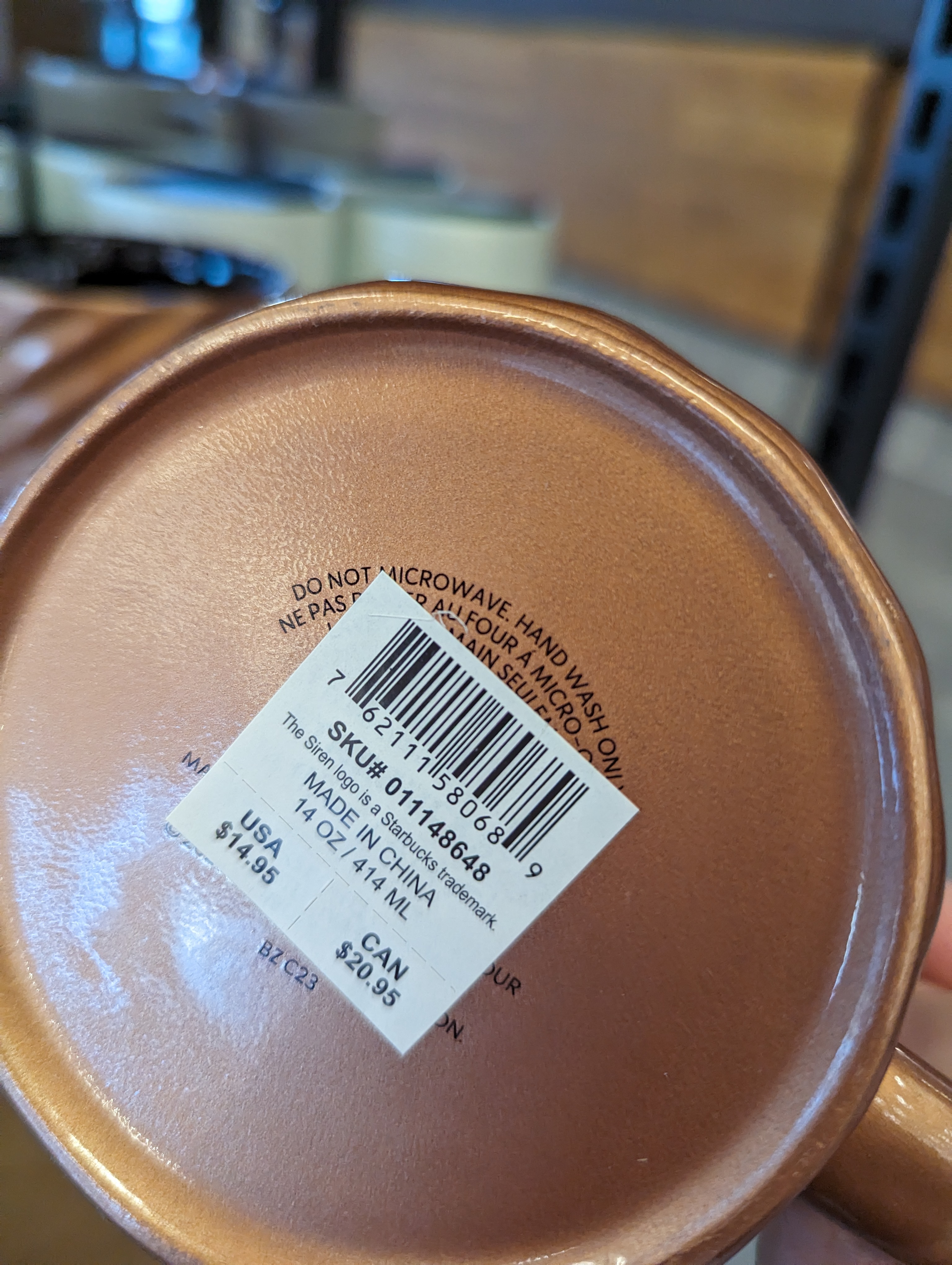 가격은 14.95달러입니다. 이건 샌프란 한정은 아닐것 같네요. 역시 전자레인지 금지라고 하네요. 이 정도 크기의 머그라면 편하게 전자레인지로 이것저것 데워마시고 싶을것 같은데 살짝 아쉬운 부분입니다.