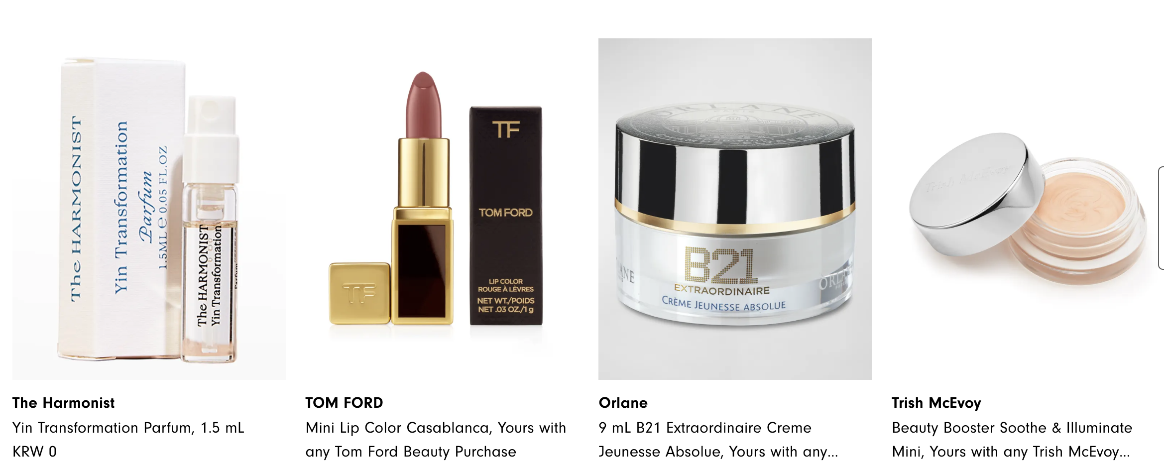 톰포드는 모든 구매자에게 미니 립컬러 증정행사가 있네요. 그런데 위에서 보여드린 것처럼 우리나라 면세점에서 세일을 하는 경우 가격차이가 정말 어마어마하기때문에 미국 백화점이나 면세점은 추천드리지 않아요. 미국 백화점에서 유일하게 추천드리는 건 연말 홀리데이 뷰티 박스 (랑콤, 에스티로더, 클리니크, 엘리자베스 아덴, 오리진스) 뿐입니다.