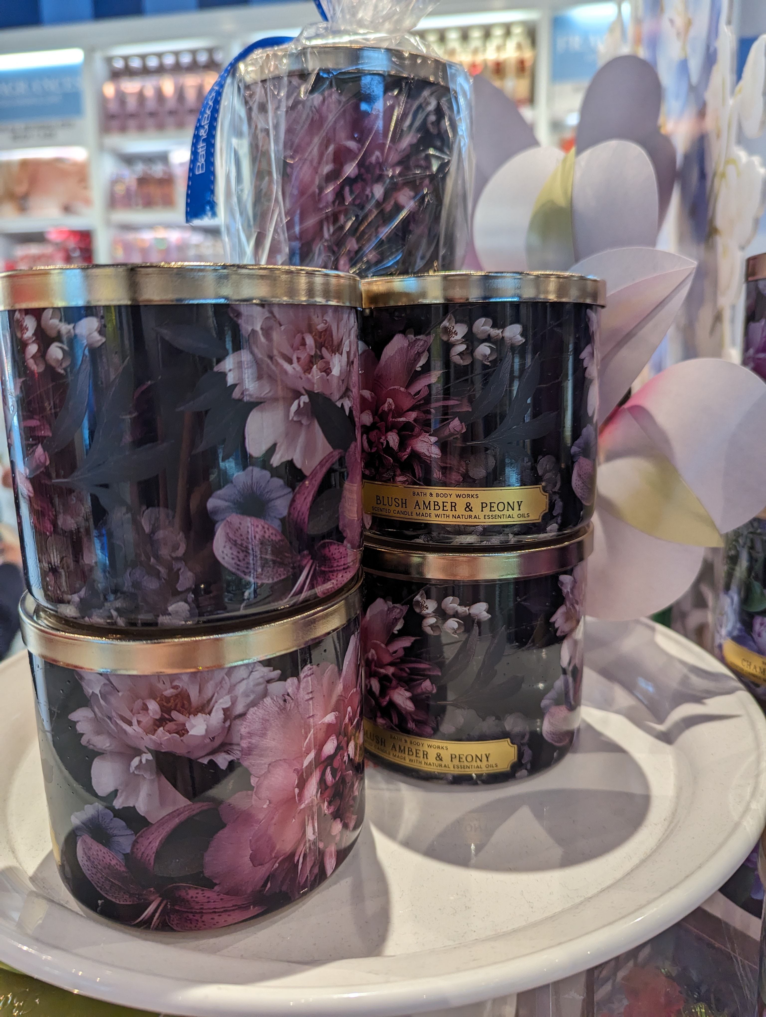 캔들도 디자인 리프레시가 되었네요. 고급스러운 색감의 프린트가 어우러진 Blush amber & peony 가 눈에 띄었어요.