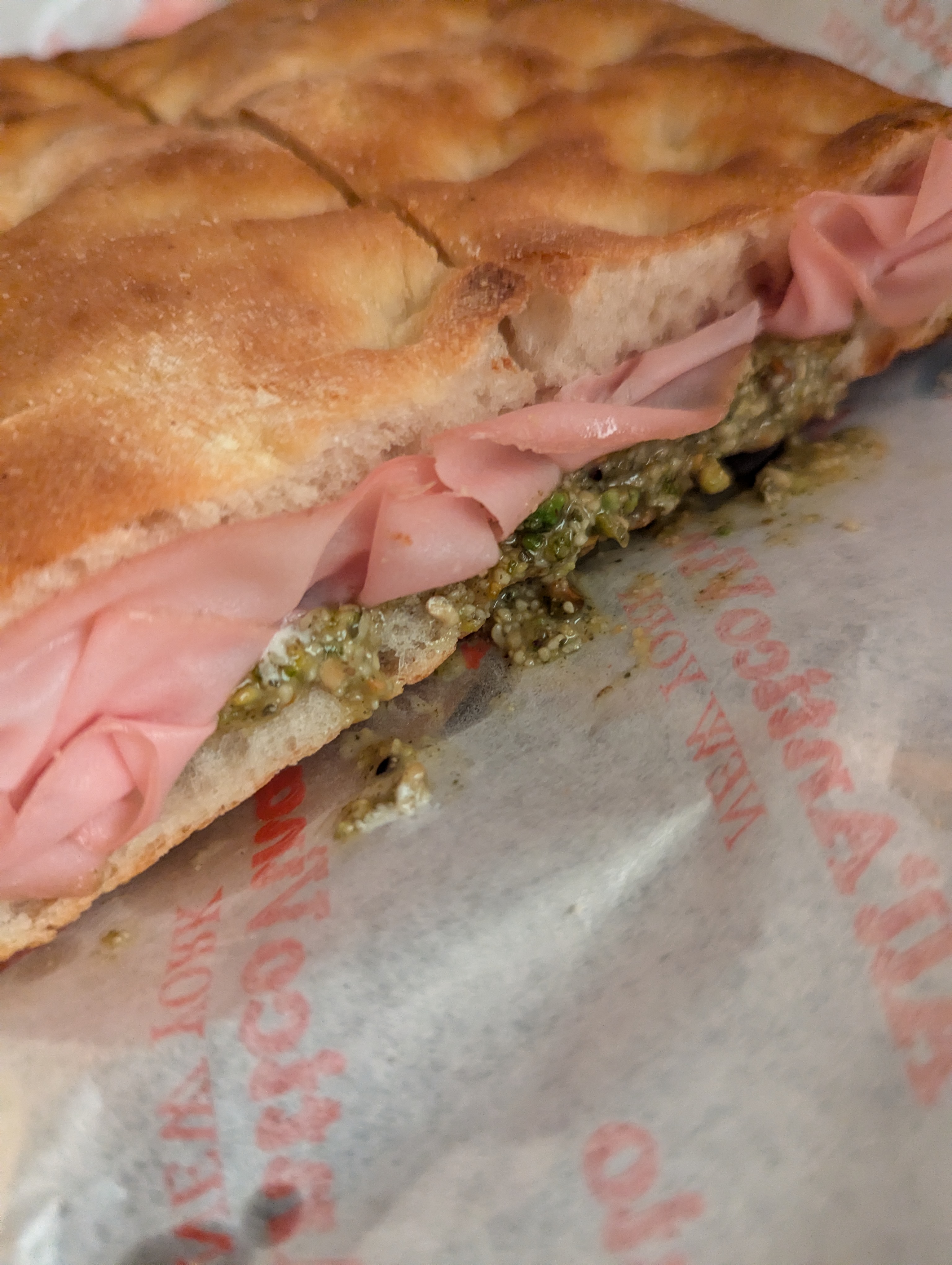 전반적으로 빵이 좀 딱딱한 편이에요. 피렌체 본점의 맛을 백퍼센트 기대할 수는 없지만 후회가 없는 맛입니다. 모르타델라가 굉장히 얇게 썰어져 있어서 식감이 좀 아쉬웠지만 그래도 미국에서 이 정도면 굉장히 감사한 맛이에요.