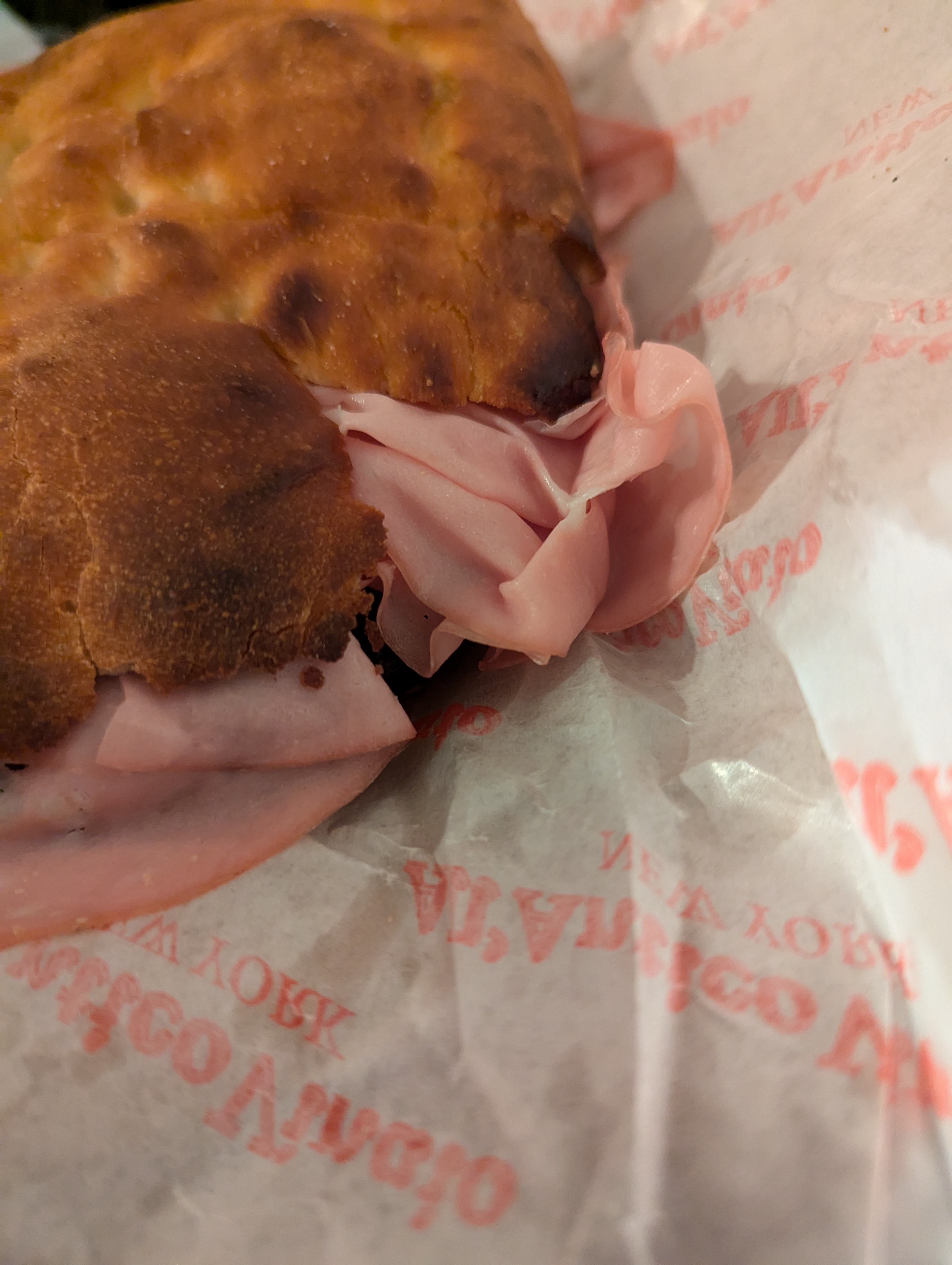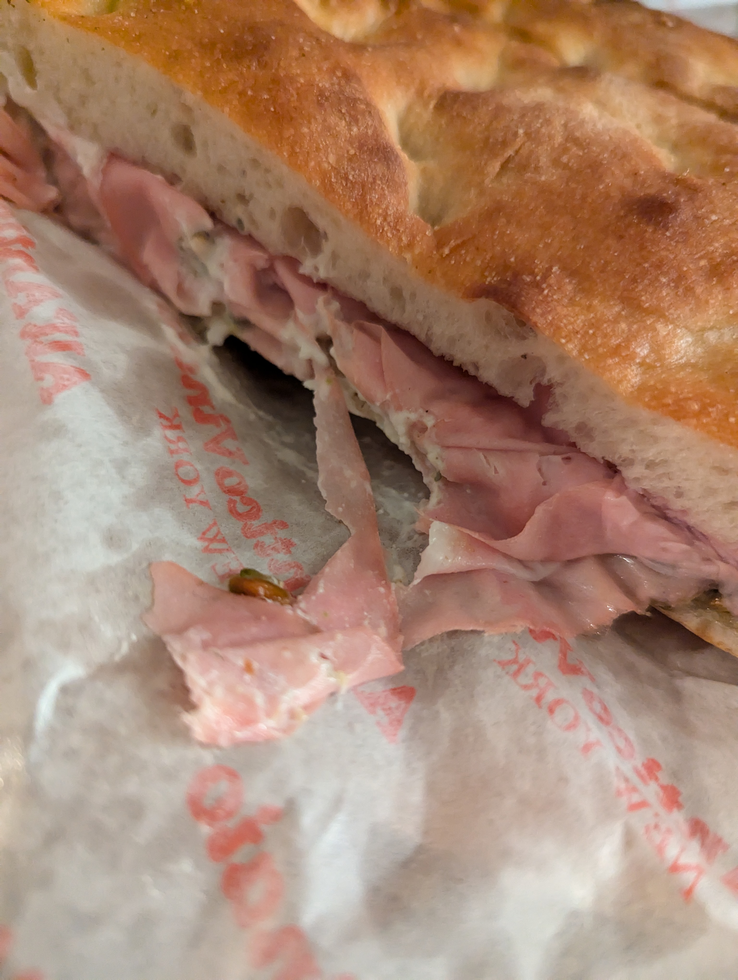 전반적으로 빵이 좀 딱딱한 편이에요. 피렌체 본점의 맛을 백퍼센트 기대할 수는 없지만 후회가 없는 맛입니다. 모르타델라가 굉장히 얇게 썰어져 있어서 식감이 좀 아쉬웠지만 그래도 미국에서 이 정도면 굉장히 감사한 맛이에요.