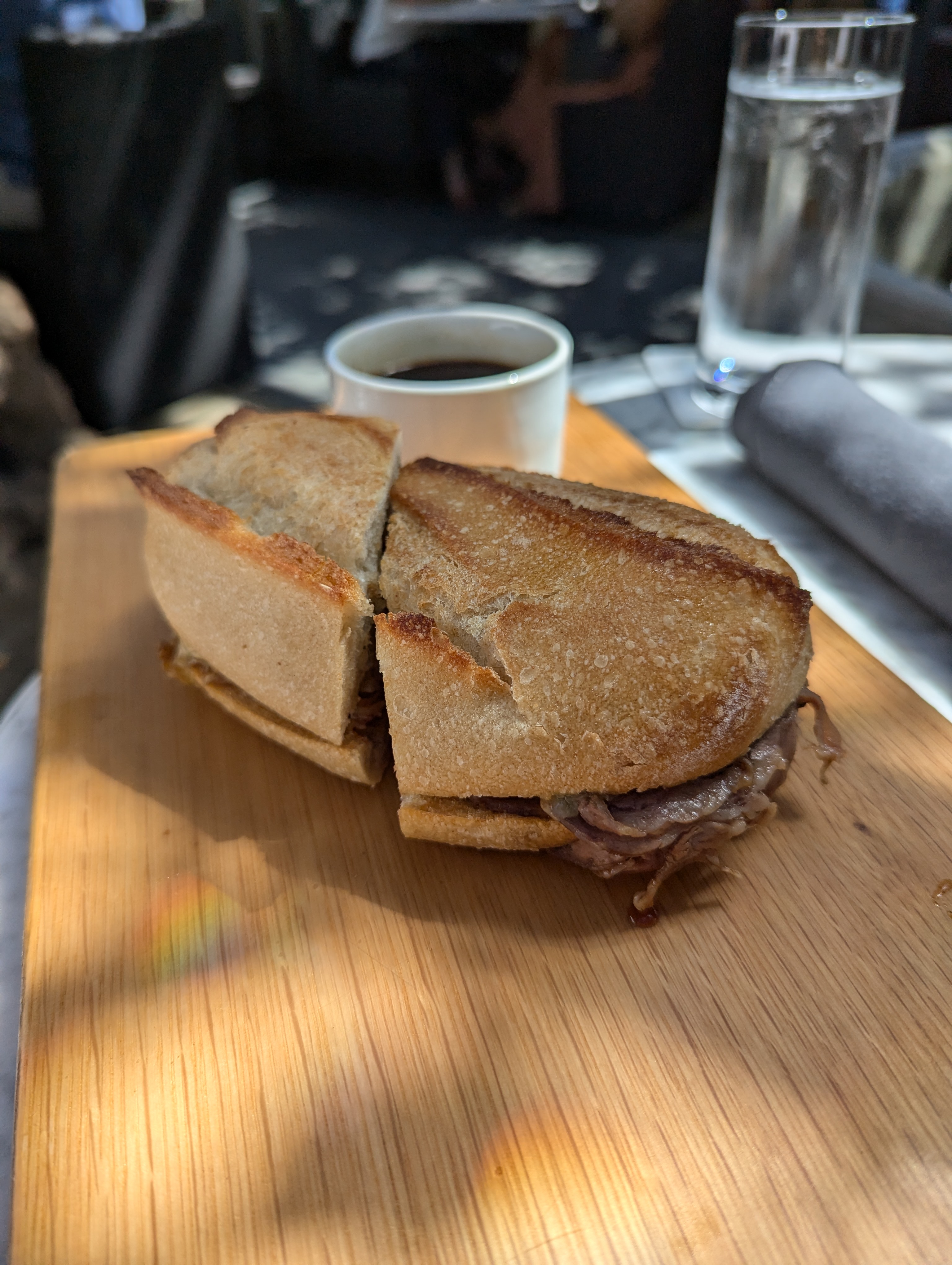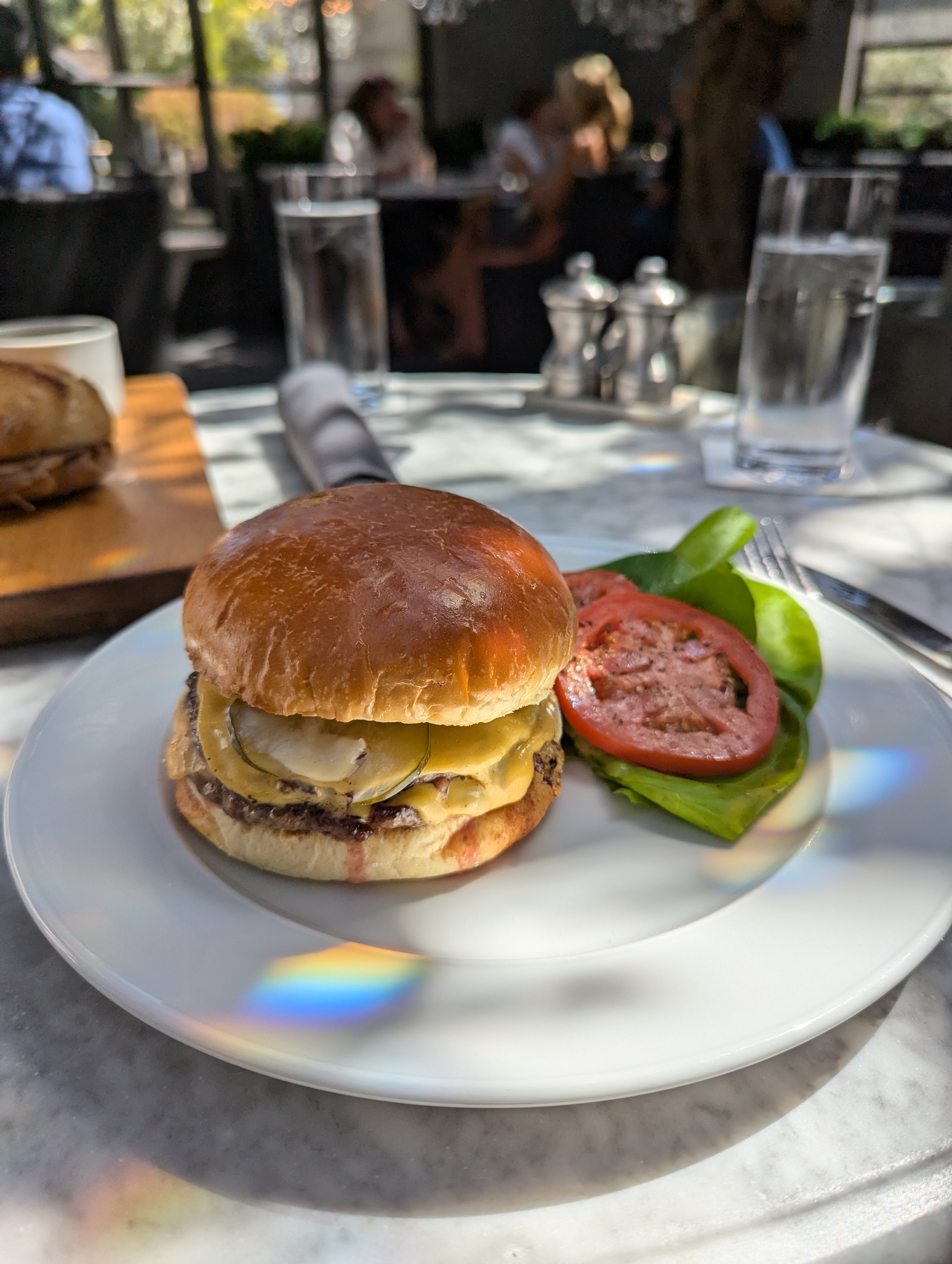 가격도 고급스러운 분위기를 생각하면 나쁘지 않았어요. 제가 시킨 햄버거는 20달러, 남편의 프렌치딥 french dip 샌드위치 (로스트 비프 샌드위치를 육수 베이스 소스에 찍어먹는 요리)는 30달러 정도 였고 tax + tip 다 해도 60달러 조금 넘었네요. 나파처럼 비싼 동네 (샌프란보다 조금 더 비쌉니다;;)에서 이 정도면 믿기지 않는 가격이에요.
