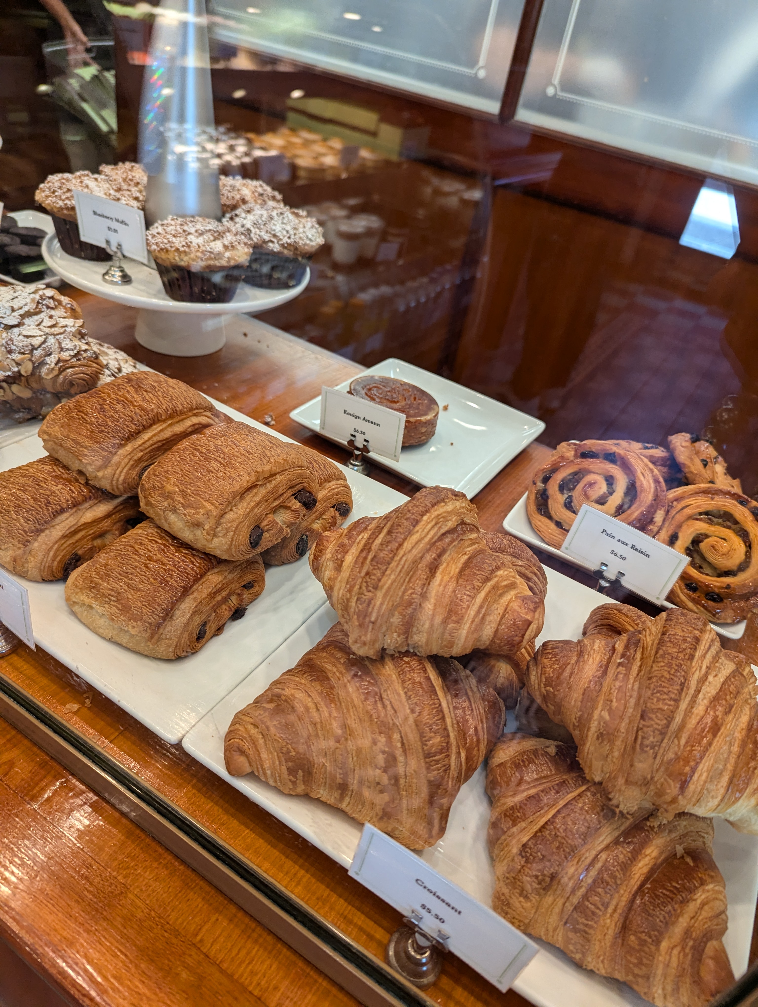 크루아상, 뺑오 쇼콜라, 퀸아망 등도 5달러 선이네요. 저희는 아몬드 크루아상 하나를 골랐어요. 엄청 대단한 맛은 아니었지만 평균 이상은 하는 맛이고 꽤 크고 두툼해서 부족함 없이 잘 먹었네요. 양이 많으니 궁금하시면 하나 맛보시고 취향에 맞으시면 추가주문 하시는 것을 추천드릴게요. 우리나라 빵들이 너무 맛있어서 상대적으로 미국 빵은 좀 덜 매력적으로 느껴질 때가 있네요.