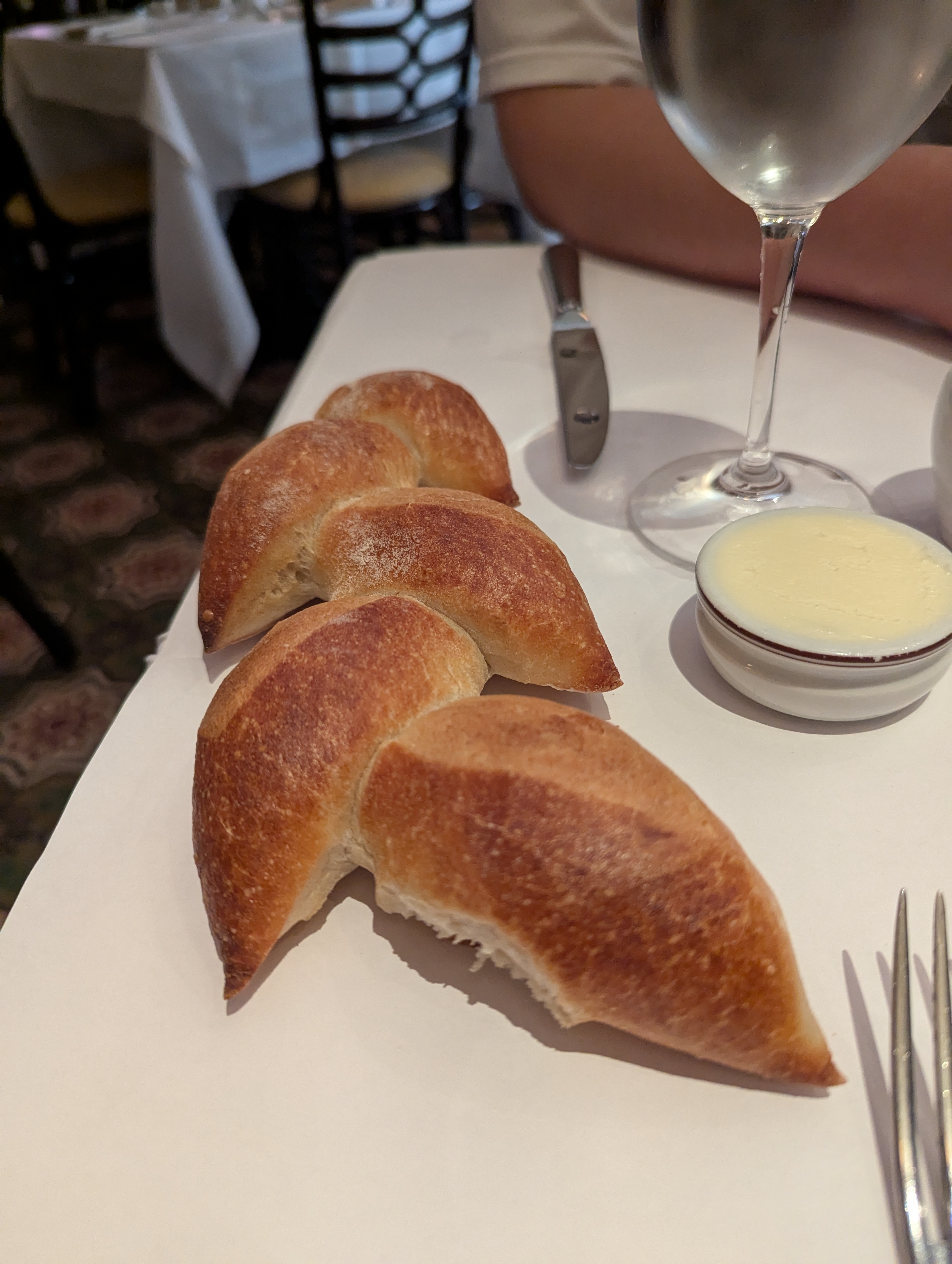 이렇게 앉으면 주문도 하기 전에 버터와 이 에피 바게트를 주십니다. 밀의 풍미를 잘 살린 고소한 바게트에요. 식당이 넓은 편이지만 테이블이 작고 테이블 사이 간격도 좁으며 사람이 항상 많아요. 왁자지껄 다들 와인 한잔 하면서 신나게 떠드는 분위기입니다. 평일에 갔는데도 이른 저녁밖에 예약이 안되더라고요. 그 시간에도 당연히 만석이었고 서버들도 바쁘게 움직여주시지만 너무 사람이 많기 때문에 좀 시간 여유를 가지고 방문하시는 것을 추천드릴게요.