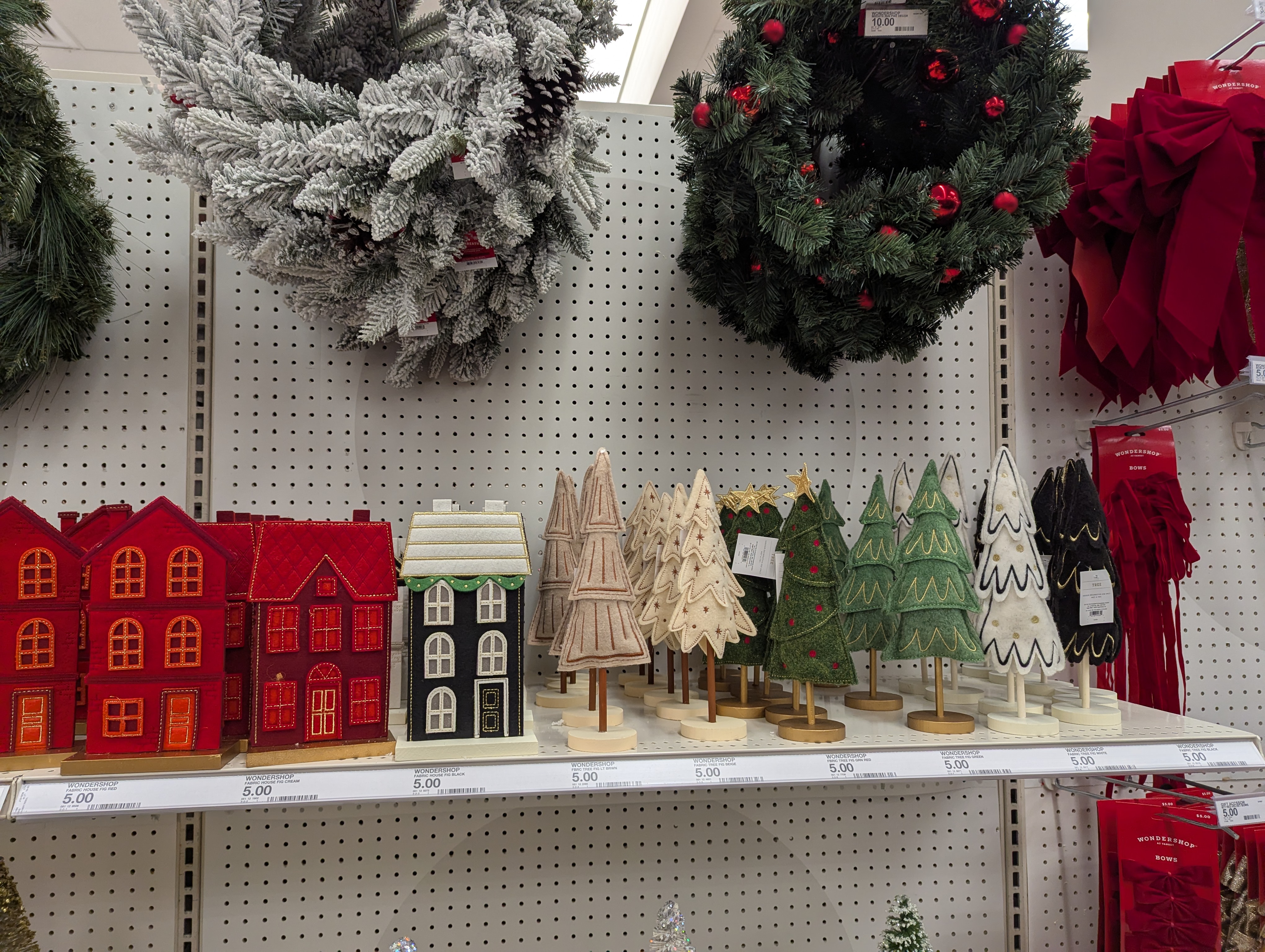 하나하나 설명드리기가 벅찰정도로 다양한 소재와 무드를 살려 정말 다 준비해놓은 타겟의 2024년 크리스마스 컬렉션입니다. 무엇보다 1달러부터 시작되는 가격대가 정말 좋고요, 미국 감성의 대중적인 크리스마스 장식을 보신다면 타겟만한 곳이 없어요. 다 올겨울 미국에 오신다면 꼭 타겟에서 한번쯤 구경해 보시는 것을 추천드릴게요.