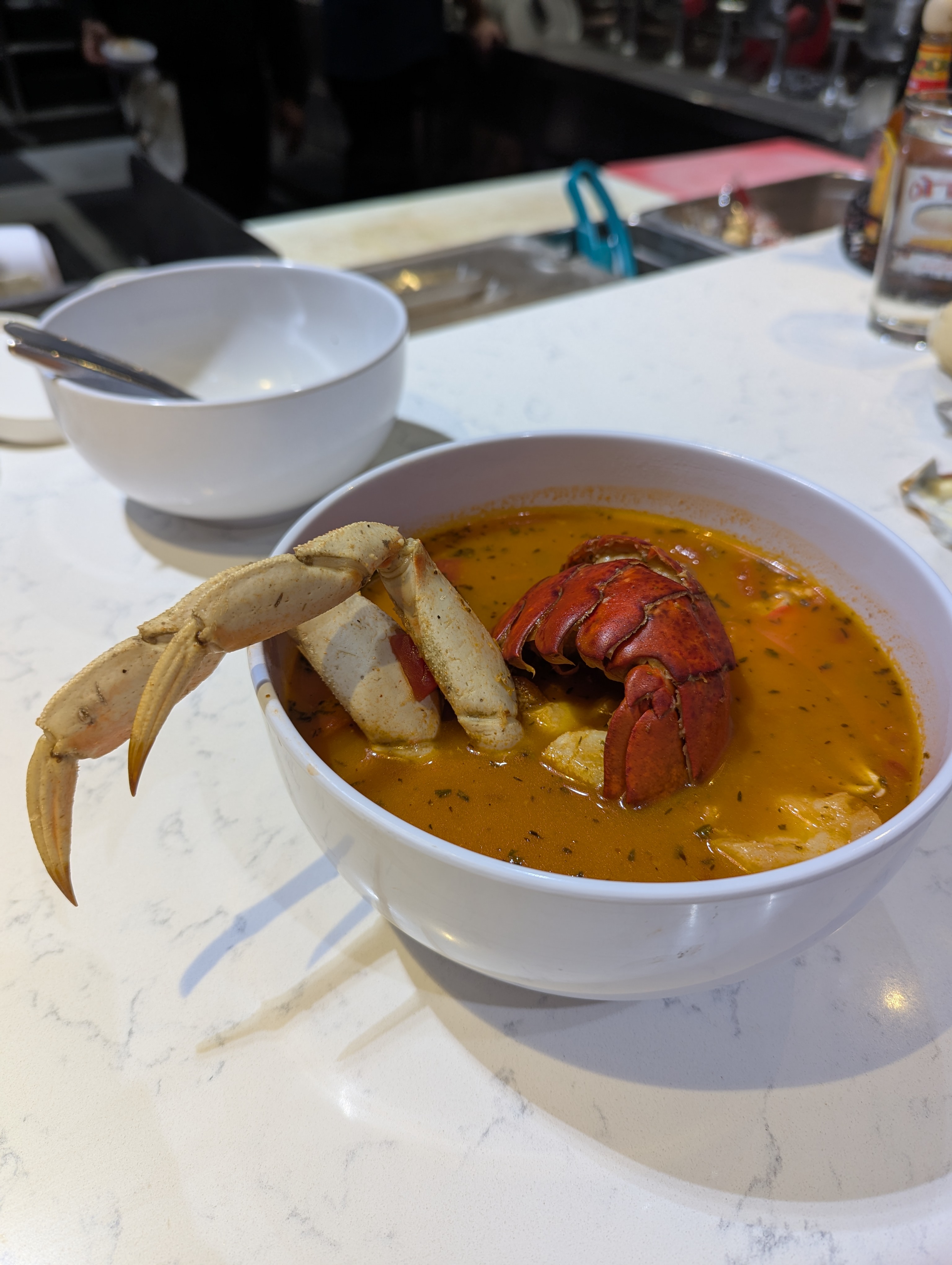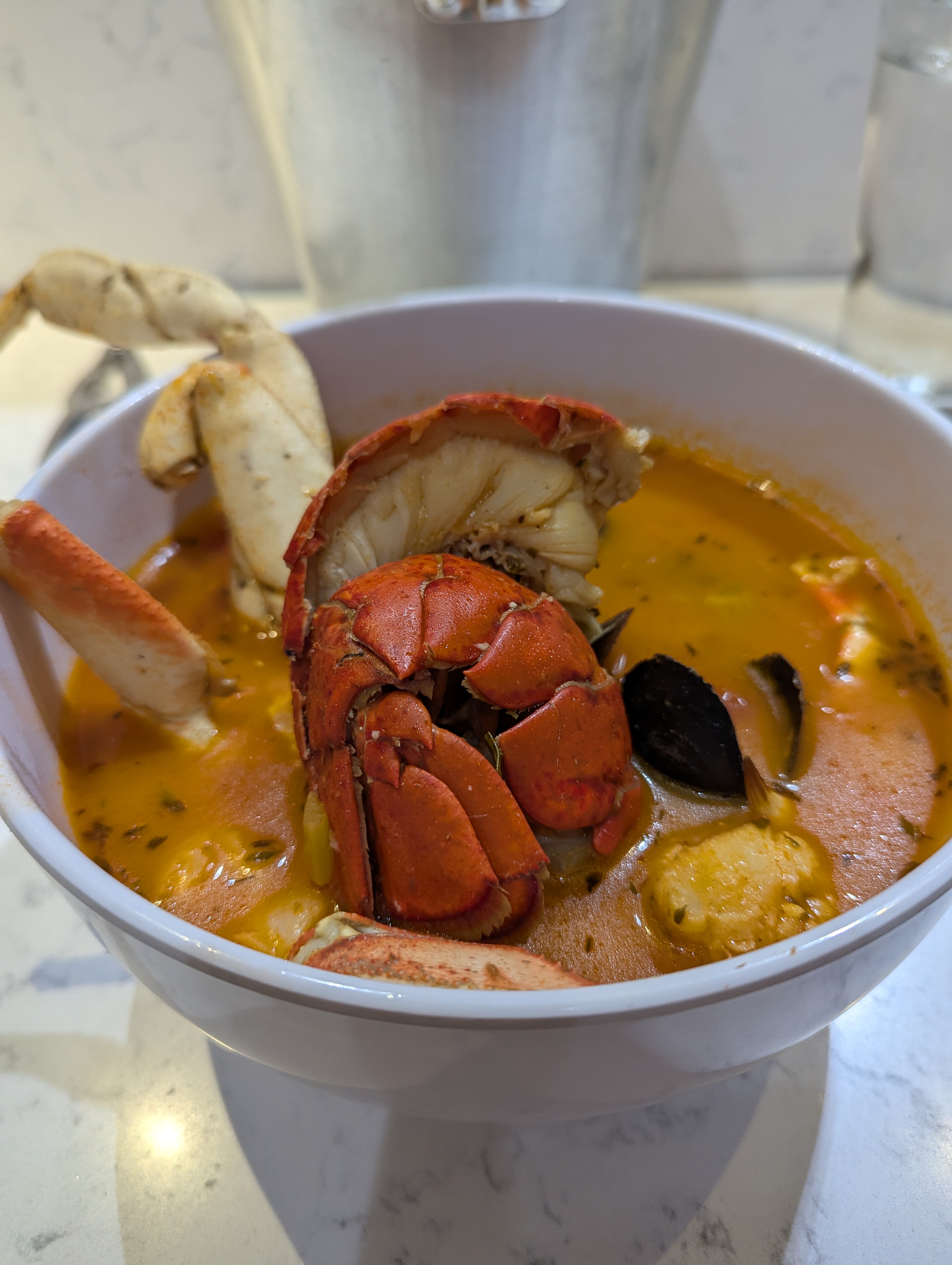 다음은 좀 쌩뚱맞지만 네바다쪽 카지노 Golden Nugget 안에 있는 작은 식당에서 먹은 부야베이스 bouillabaisse 입니다. 이렇게 랍스터와 게, 홍합, 대구살까지 풍성하게 들어가서 단돈 36달러 (+세금, 팁) 입니다. 샌프란에서 이렇게 잘해주는 부야베이스를 찾기도 어려울 뿐더러 찾는다고 해도 이 두배 가격을 줘야 나올까 말까한 수준이에요. 정말 이거 다시 먹으러 타호 가고 싶습니다.