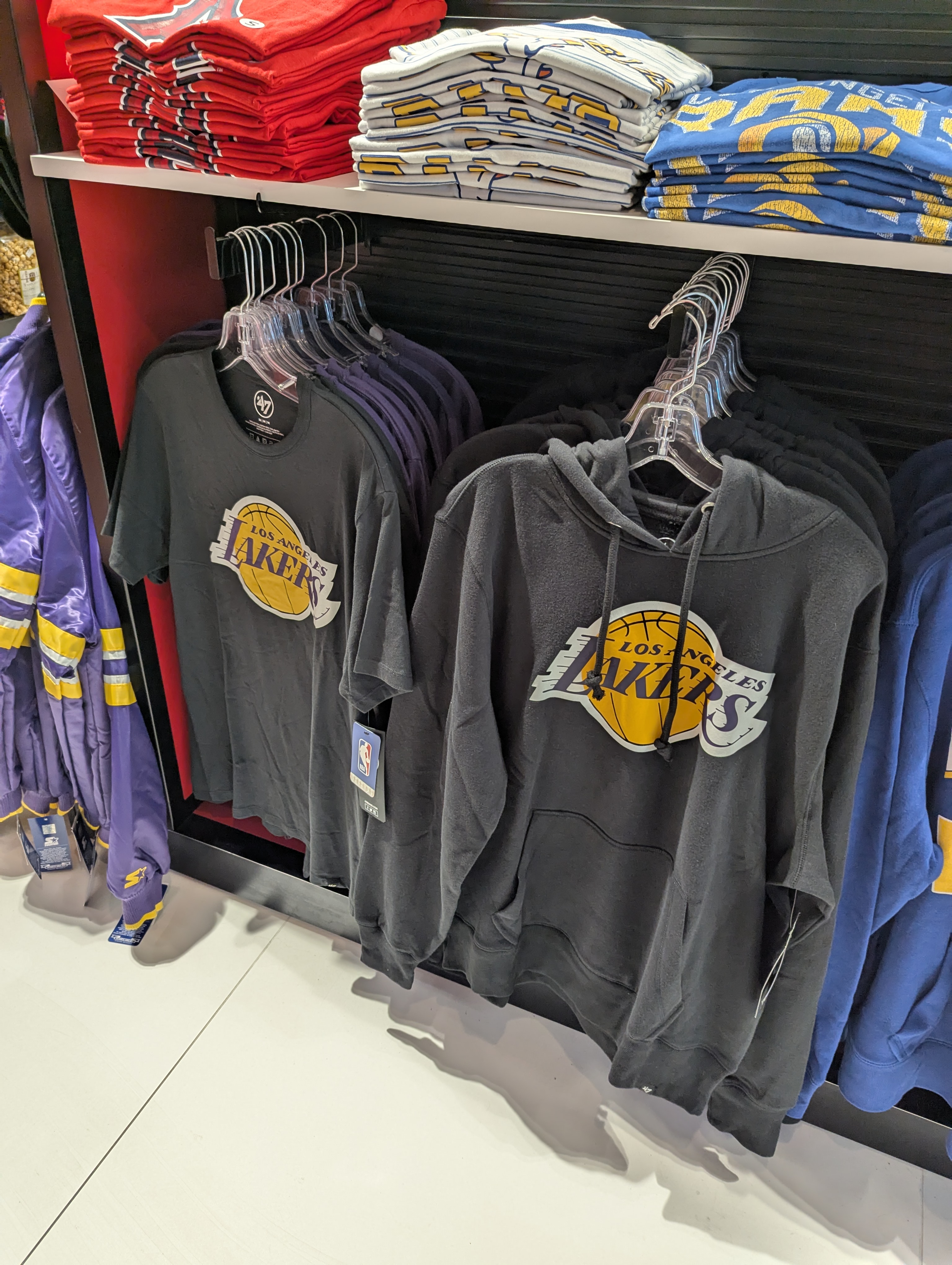 LA 다저스, 레이커스 등 스포츠 팀의 모자 및 굿즈도 많아요. 의외로 미국은 이런 스포츠팀 굿즈가 비싸더라고요. 시내에서는 Dick's sporting goods, Lids 등 가게명으로 구글맵 검색하시면 됩니다. 제가 스포츠 굿즈는 별로 관심이 없어서 정확한 정보는 전달드리기가 어렵지만 지금 검색해보니 레이커스 후디가 36달러로 세일 중이에요. 면세점에서는 40달러 이상이었던 것 같습니다.