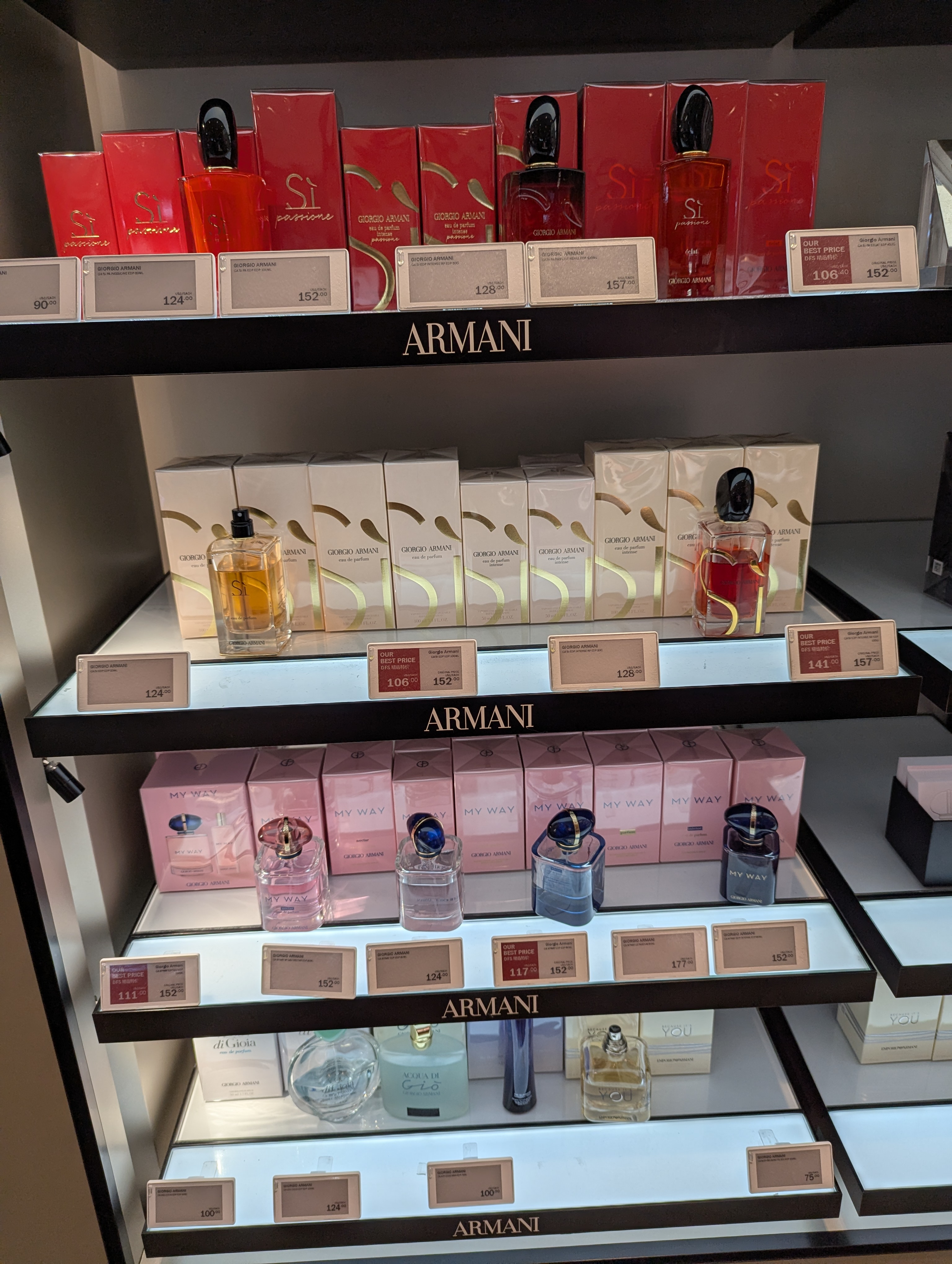 아르마니의 경우 백화점 프로모션이 별로 없는 브랜드이고요, 향수 Si 가 152달러 제품이 106달러로 프로모션, My Way 152달러 제품이 117 달러로 할인 중입니다. 이 브랜드 역시 한국 면세점과 가격비교 필수에요.