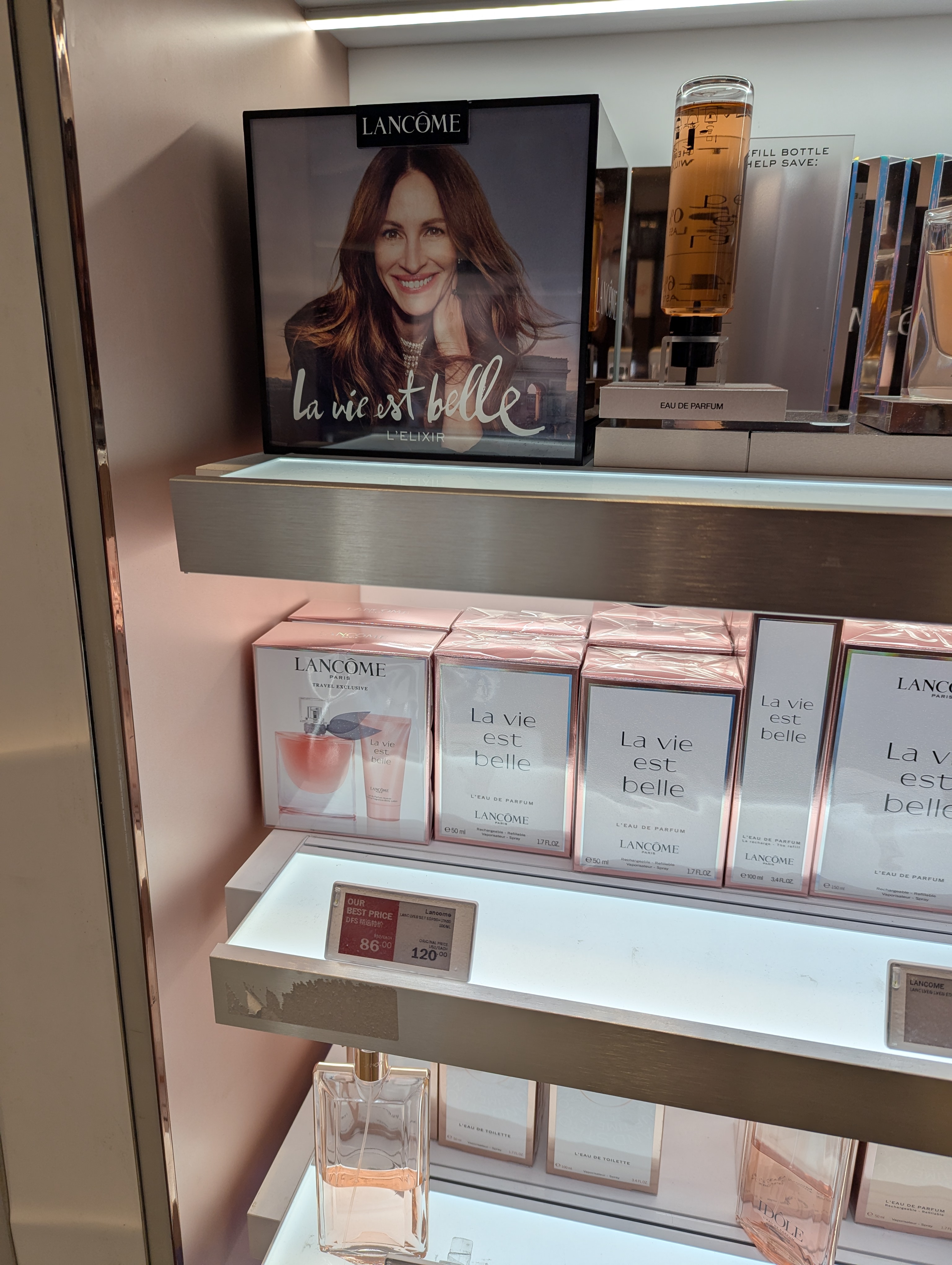 랑콤의 라비에벨 향수의 경우 120달러 제품 86달러로 할인 중이에요.