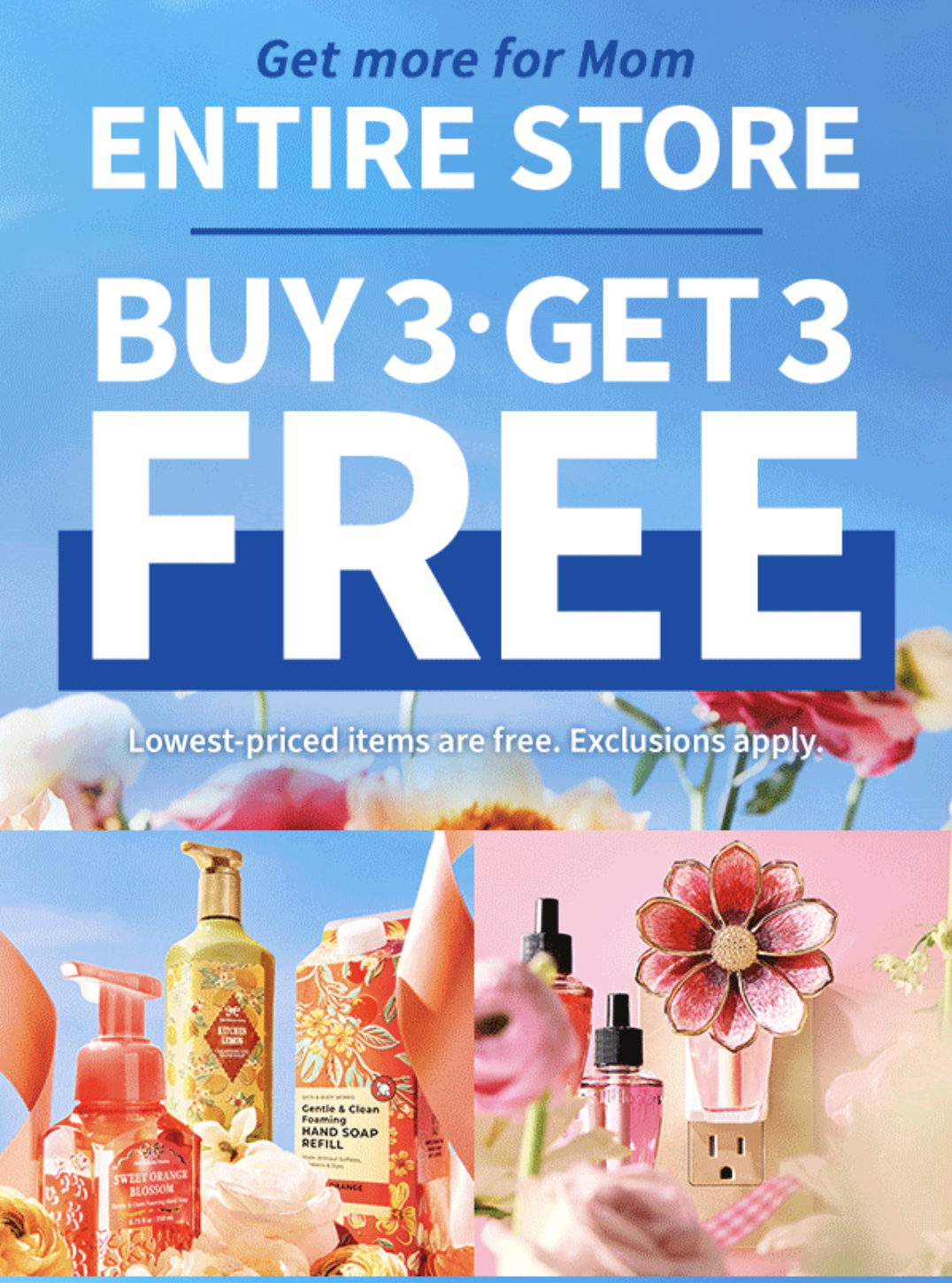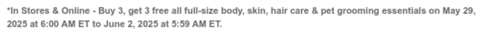 먼저 가장 급한 소식부터 전해드릴게요. 지금 진행되고 있는 3+3 프로모션인데요, 6월 1일 (미국시간으로 내일 일요일) 까지 진행된다고 하니 지금 미국에 계시다면 지금 당장 혹은 내일 방문을 추천드립니다. 3+3 프로모션은 꽤 자주 있는 프로모션이고 여행을 오신다면 만족하실 만한 조건이라고 생각해요. 예상도 못할 배쓰앤바디웍스 프로모션을 기준으로 여행 일정을 잡으실 수는 없잖아요. 바디, 스킨, 헤어케어만 대상이라서 손세정제, 핸드워시, 립밤, 캔들 등은 제외가 됩니다.
