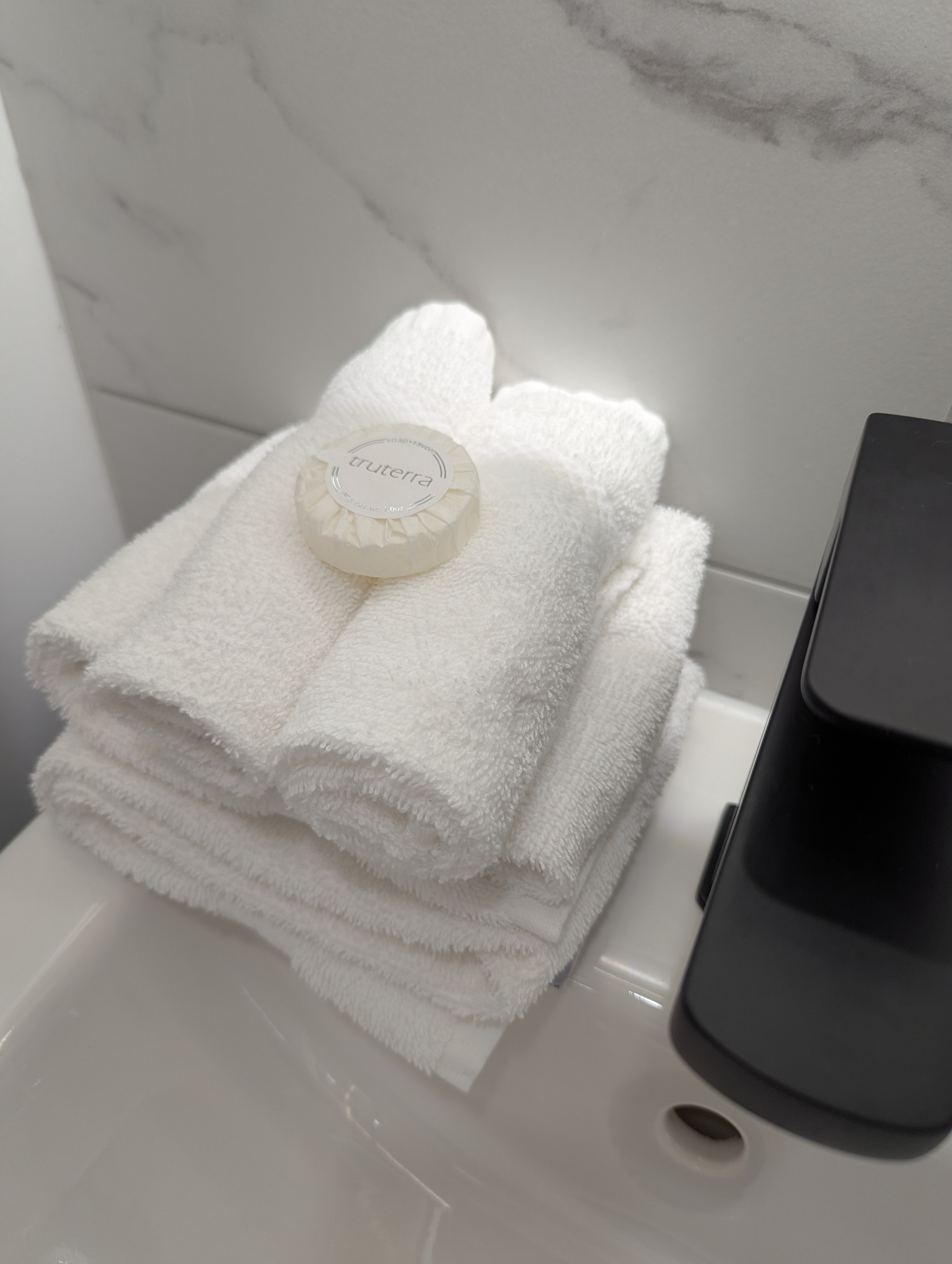 다만 화장실은 북미 호텔 치고는 매우 작은 편이에요. 수건을 넉넉하게 받아도 보관할 공간이 애매한 점은 좀 아쉬웠어요. 화장실 밖이어도 좋으니 이케아 철재 수납장 하나만 있어도 불편이 덜 했을 것 같다는 생각이 듭니다.