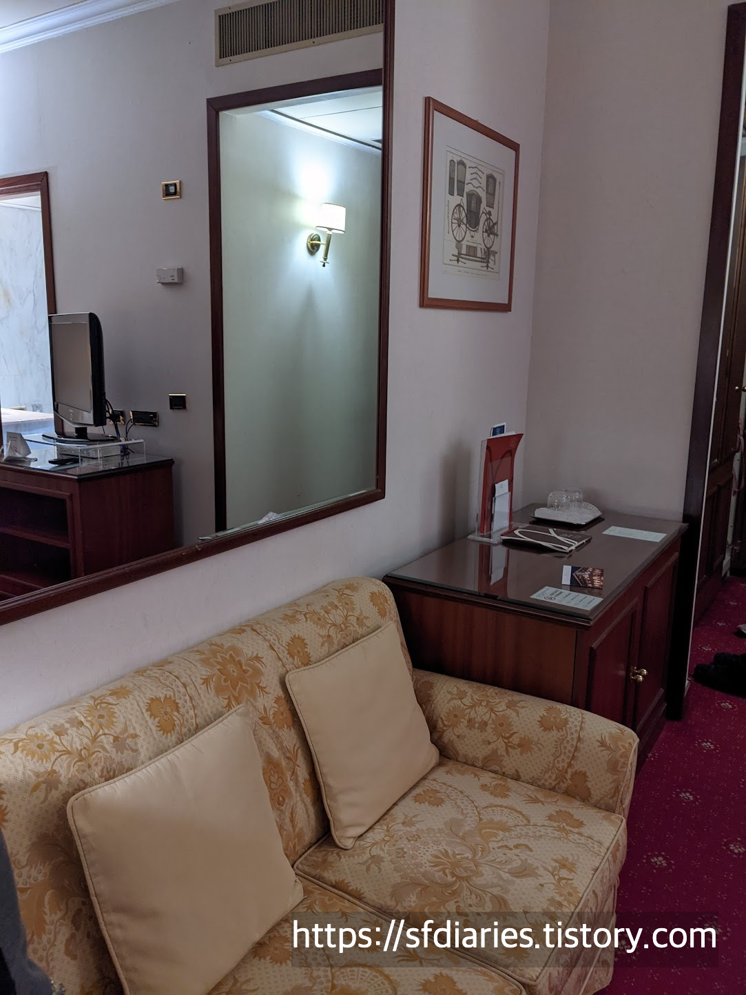 오래된 호텔이 괜찮으시다면 적극 추천드리는 호텔입니다. 다시 한번 말씀드리지만 이 호텔의 단점은 볼로냐 도시 특성상 이곳 대부분의 호텔의 단점이기도 하답니다. 로비도 많이 크진 않지만 계단 위에 샹들리에도 있고 귀엽게 꾸며져 있어요. 우고 바시 아파트와 정반대의 느낌이 나는 분위기라서 오히려 신선하게 느껴지기도 했네요. 저희는 만족스러운 숙박이었습니다. 충분히 둘러보시고 결정하시면 될 것 같아요. 즐거운 여행 되시고요, 읽어주셔서 감사합니다.