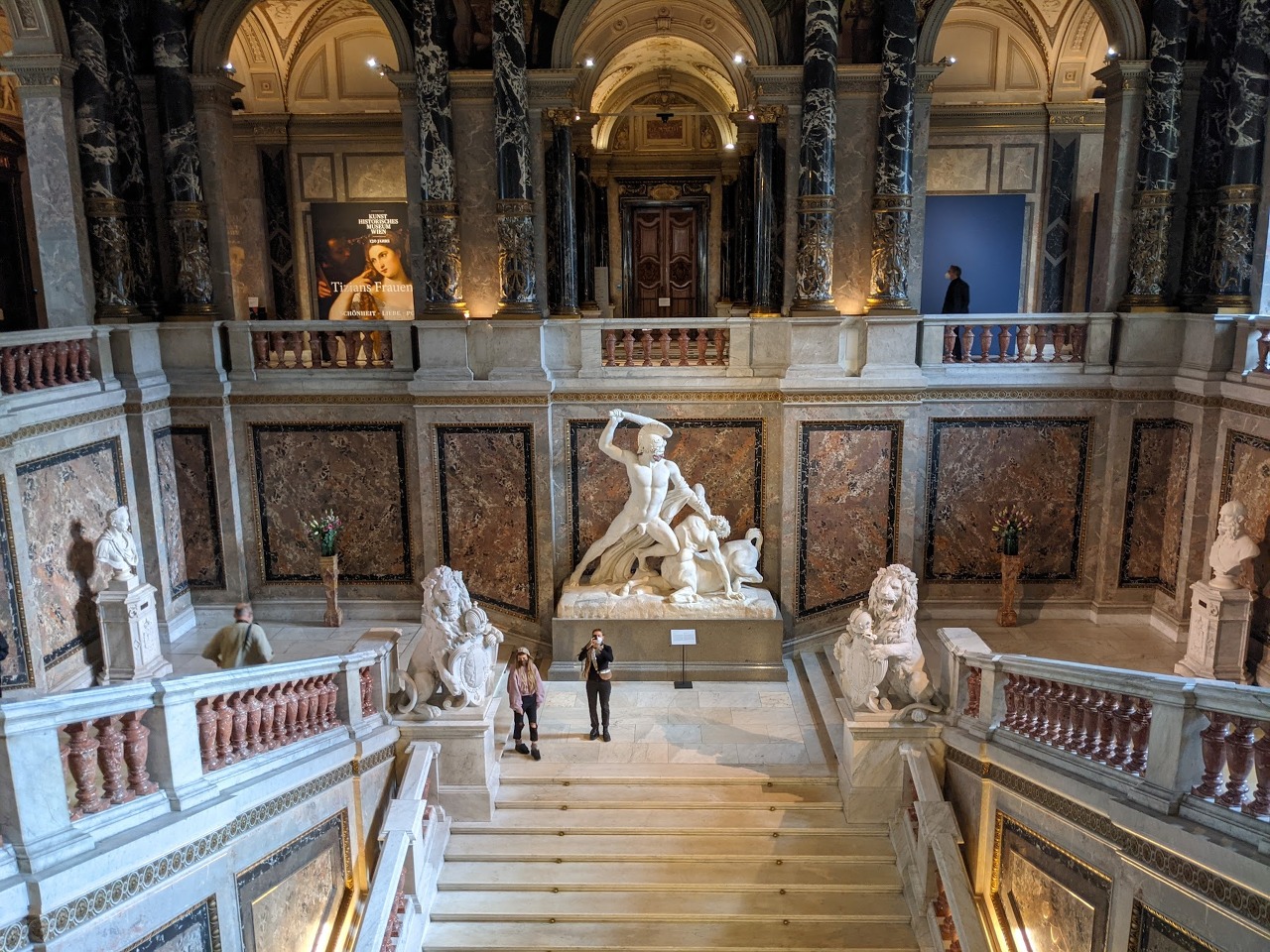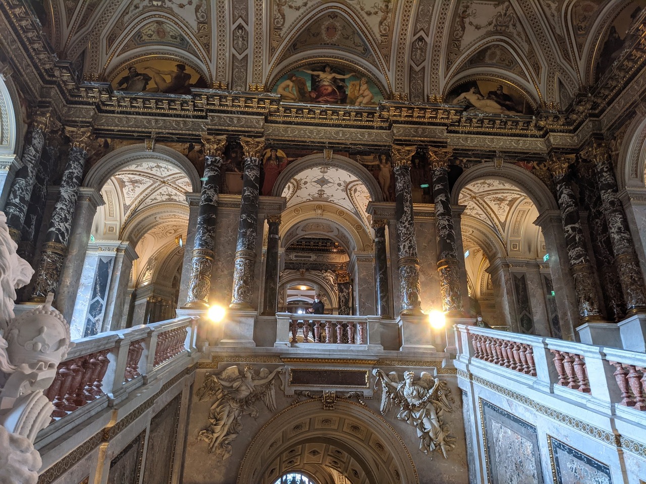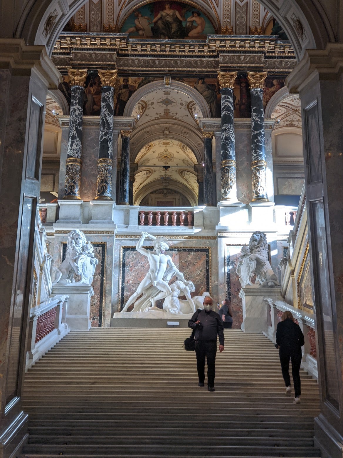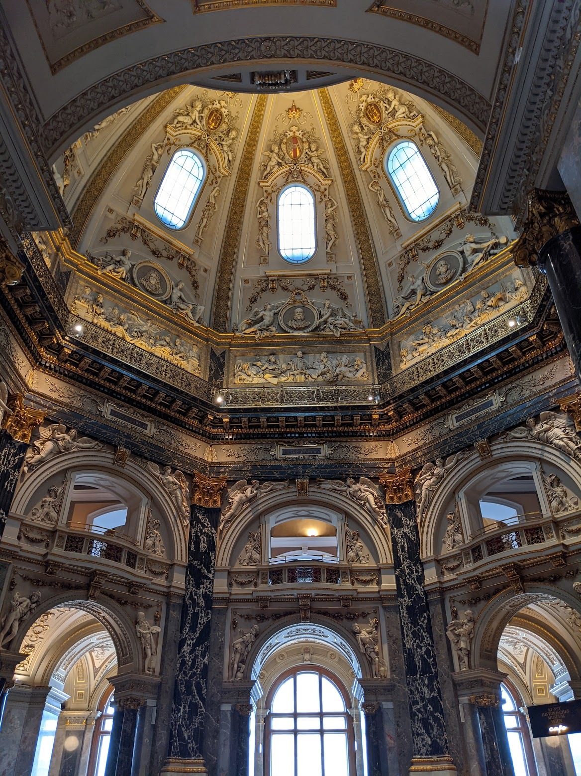 회화 전시실까지 다 둘러보고 아쉬운 마음을 달래며 박물관 내부의 모습을 조금이라도 더 사진에 담아왔어요. 전시도 아름답고 건물도 빈틈없이 장식된 정말 멋진 미술사박물관입니다. 비엔나에 가시게 되면 꼭 한번 들러보세요. 입장료가 전혀 아깝지 않은, 훌륭한 전시였습니다. 저희는 약 세시간 정도 보고 왔고요, 천천히 보시는 분들은 네시간 이상도 쓰신다고 해요. 시간이 조금 부족하시다면 두시간 정도 안에 주요 작품만 보셔도 좋으니 꼭 한번 들러보시기를 권해드립니다. 물론 루브르나 우피치보다는 규모가 작지만 전시가 매우 알차고 오스트리아 문화에서 높게 쳐주는 예술작품이 어떤 느낌인지 가늠해 볼 수 있는 시간이었습니다. 작가들의 현재 국적을 보면 옛 합스부르크 왕가의 영향력이 얼마나 많은 나라들을 장악했었는지도 쉽게 알 수 있고요. 무엇보다 건물이 정말 화려하고 정성스럽게 꾸며져 있습니다. 물론 사진 찍기에도 좋아요.