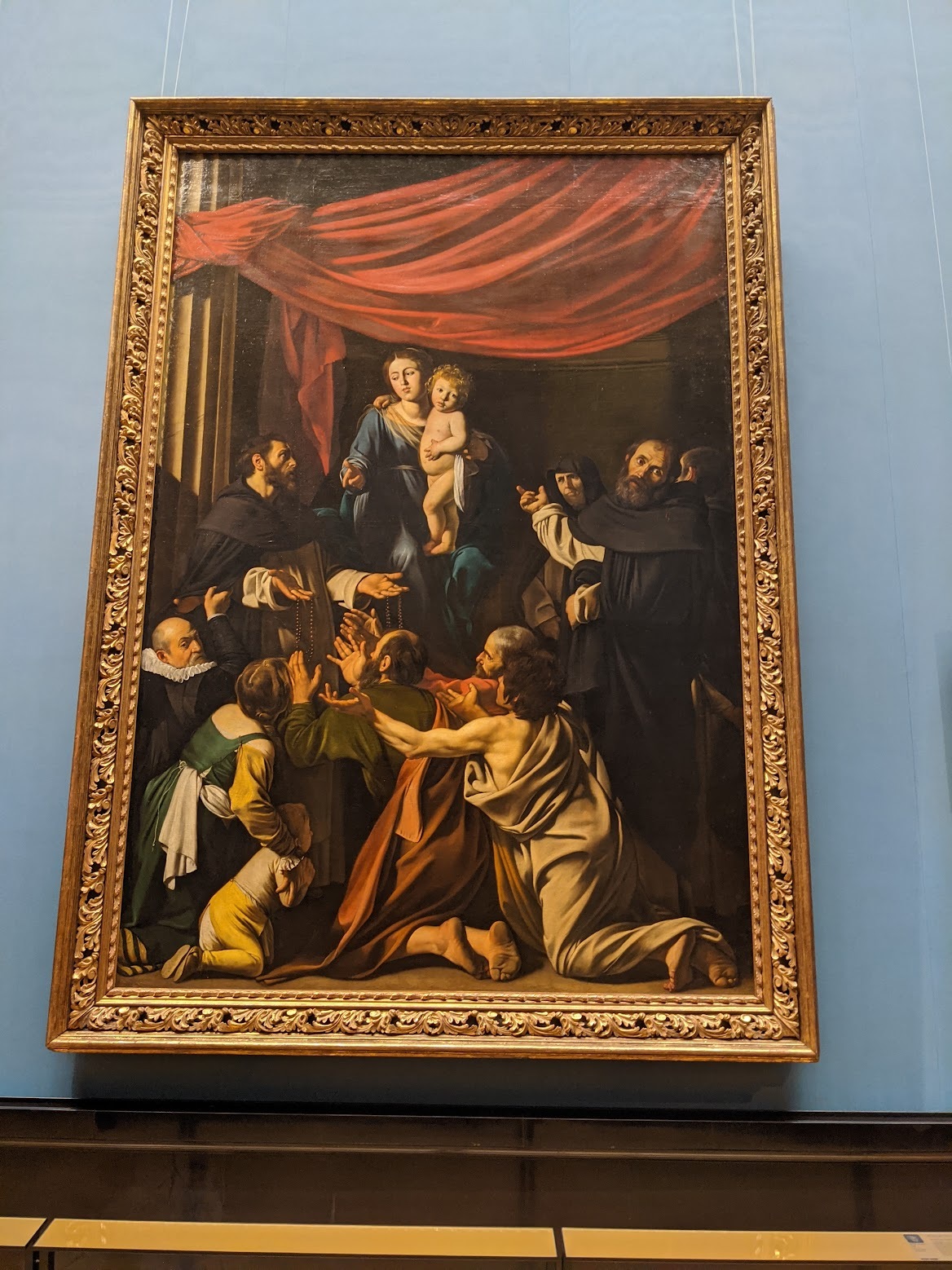 남편이 애정하는 카라바조의 그림, '로사리오의 성모'입니다. 성모의 표정이 조금 시큰둥한 게 재미있군요. 성화를 이상적으로만 그리던 화풍에서 벗어나 인간적인 면모를 한스푼 더한 카라바조 답네요. 제가 좋아하는 벨라스케스와 남편이 좋아하는 카라바조를 동시에 소장하고 있다니, 여기 안 갔으면 큰일날 뻔했어요.