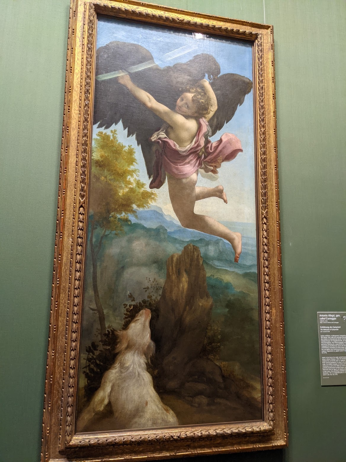이어서 코레조의 작품, '독수리에게 유괴된 가니메데스'라는군요. 가니메데스는 누군지 모르지만 올려다보는 개가 귀여워요. 그리스 신화 이야기인가봐요.