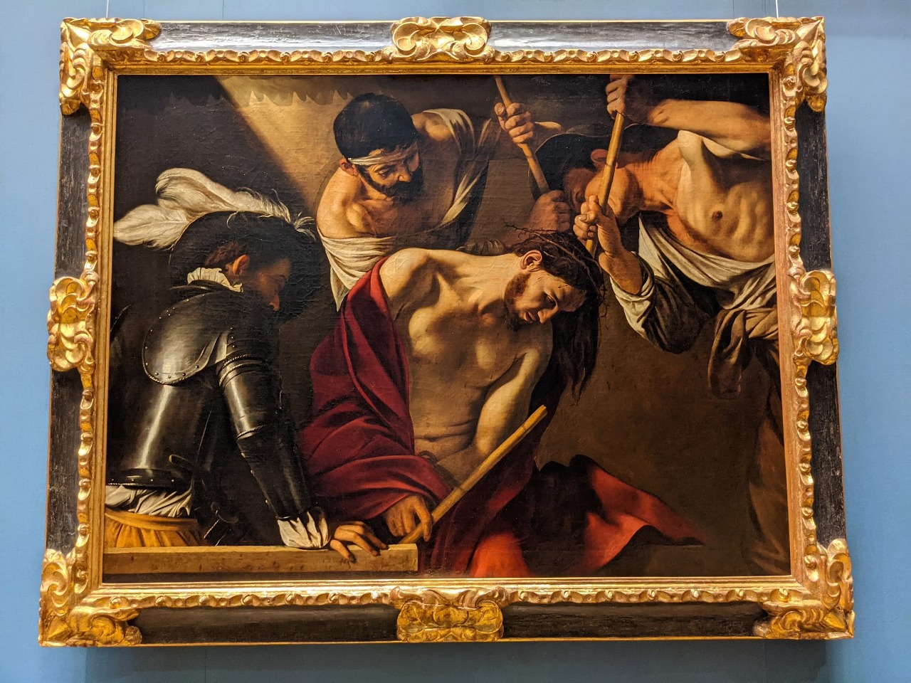 역시 카라바조의 작품, '가시면류관'입니다. 고통당하는 예수님의 모습을 보니 마음이 아프군요. 한편, 왼쪽 끝 병사의 모습이 카라바조와 동시대의 복식을 하고 있는 모습이 흥미롭습니다. 단순히 머나먼 옛이야기가 아닌, 조금 더 와닿는 현실적인 감동을 주려고 이렇게 표현헸나, 싶어요. 오늘날 카라바조가 이 그림을 그렸다면, 이 사람은 이탈리아의 초록색 얼룩무늬 군복을 입고 있었을까요?