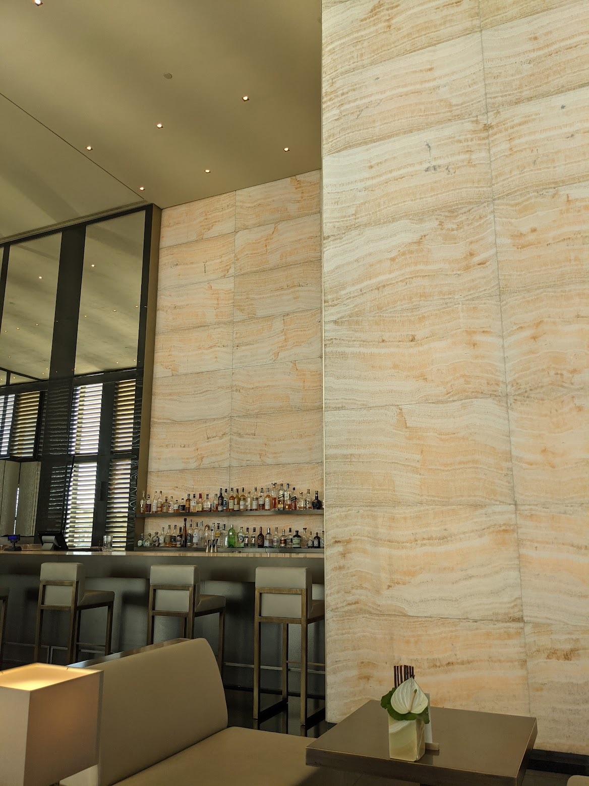 직원이 테라스바에 전화를 하더니 30분 기다리라고 했어요. 로비가 좀 낡고 우중충했지만 기다렸습니다. 다행히 10분 후에 (매우 거만한 태도로) 올라가라고 하더라고요. 엘레베이터도 조금 좁고 낡은 기분이 들긴 했습니다. 내부 장식이나 서비스가 1박에 500달러가 넘는 호텔치고는 좀 당황스럽긴 했어요. 사실 전망이 예쁘다는 것 때문에 가긴 했지만 로비에도 내심 기대를 했었거든요. 로비를 아마 곧 리뉴얼 하시지 않을까, 기대해 봅니다. 나중에 알고보니 심지어 메리어* 계열이더라고요.