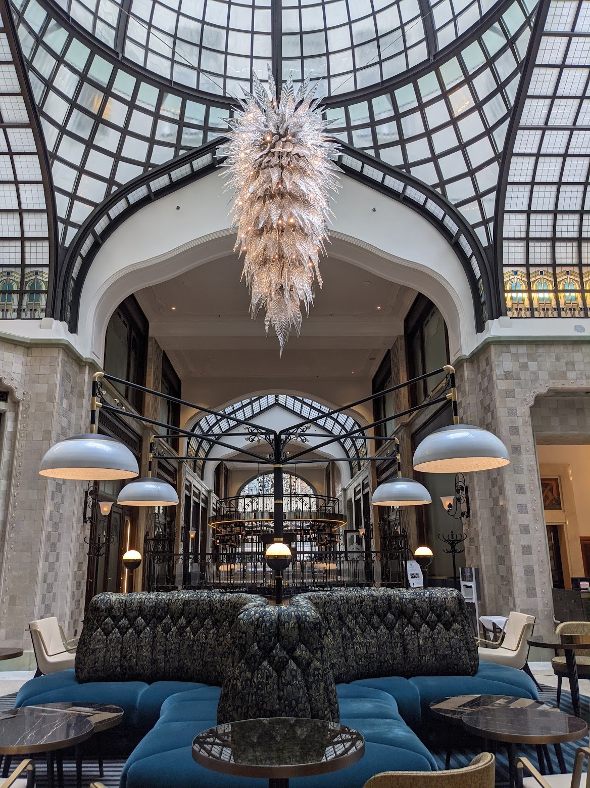 호텔 이름부터가 궁전인데요, 여기도 어마어마한 유리천장이 있습니다. 하얏트 호텔 보다는 조금 더 단순한 느낌이지만 여전히 특별하고 화려한 느낌이 나는 것은 사실이에요. 취향에 따르겠지만 제 생각으로 오늘 보여드린 호텔 중 내부 인테리어는 최고라고 생각합니다.