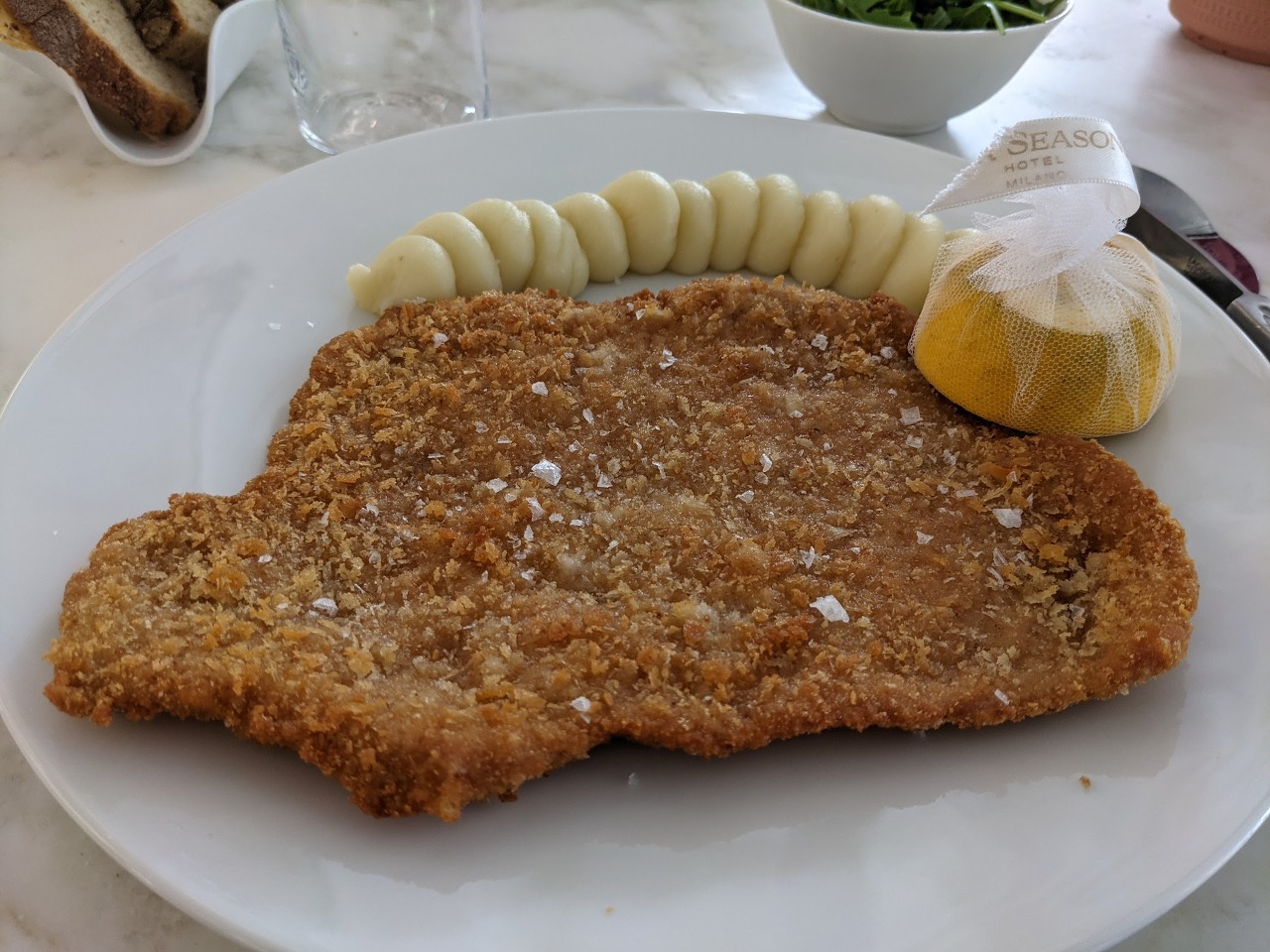 여기 가기 전날 갤러리아 비토리오 엠마누엘레에서 1인당 40유로 대의 식당에서도 송아지 커틀렛을 먹어봤는데요, 조금 더 걸어서 포시즌스 올걸, 매우 후회했습니다. 가격차이는 1인당 10유로지만 맛의 차이는 그 이상이에요. 부드럽고 고소하고 바삭하고 혼자 다합니다. 도쿄에서 먹던 돈카츠 맛집들과 비교해도 손색이 없어요. 곁들여 나온 매시드 포테이트도 엄청 맛있어서 남기지 않고 다 먹고 왔어요. 밀라노가 물가가 저렴한 편은 아닌 것 같더군요. 웬만한 40유로대 식당 가실거면 그냥 여기 가시는 게 좋지 않을까, 생각해 봅니다.