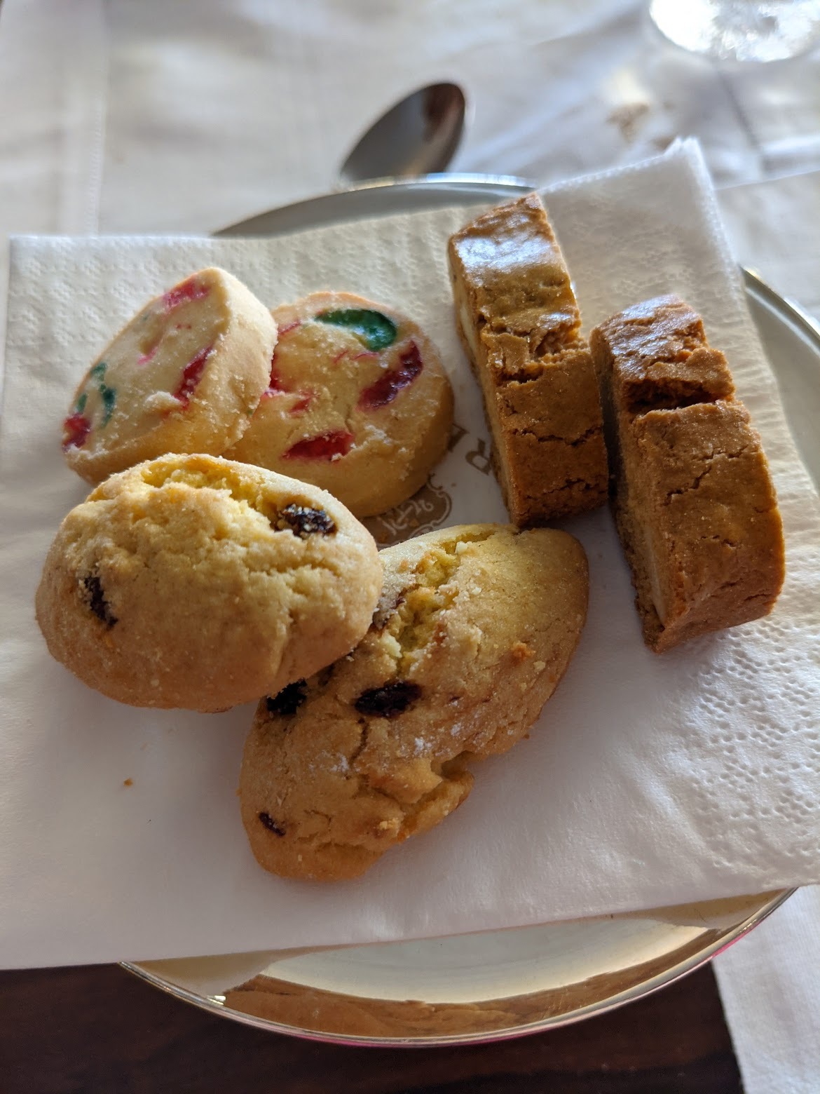 식사가 끝나면 작은 구움과자를 줍니다. 전체적으로 음식 맛도 훌륭하고 분위기도 멋진, 추천드리는 식당이에요. 디저트나 음료를 제외하면 1인당 40유로 대의 파스타 혹은 50유로 대의 메인디쉬를 드실 수 있어요(커버차지 주의). 지금쯤이면 공사가 다 끝났을테니 살루테 성당 전망도 잘 보이겠네요. 저희는 여기서 점심을 먹고 5유로 차마시기 포스팅에서 말씀드린 다니엘리 호텔에서 커피를 마셨어요. 중간에 두칼레 궁전에 들러 산책을 하고 가셔도 되는 정말 괜찮은 동선입니다.