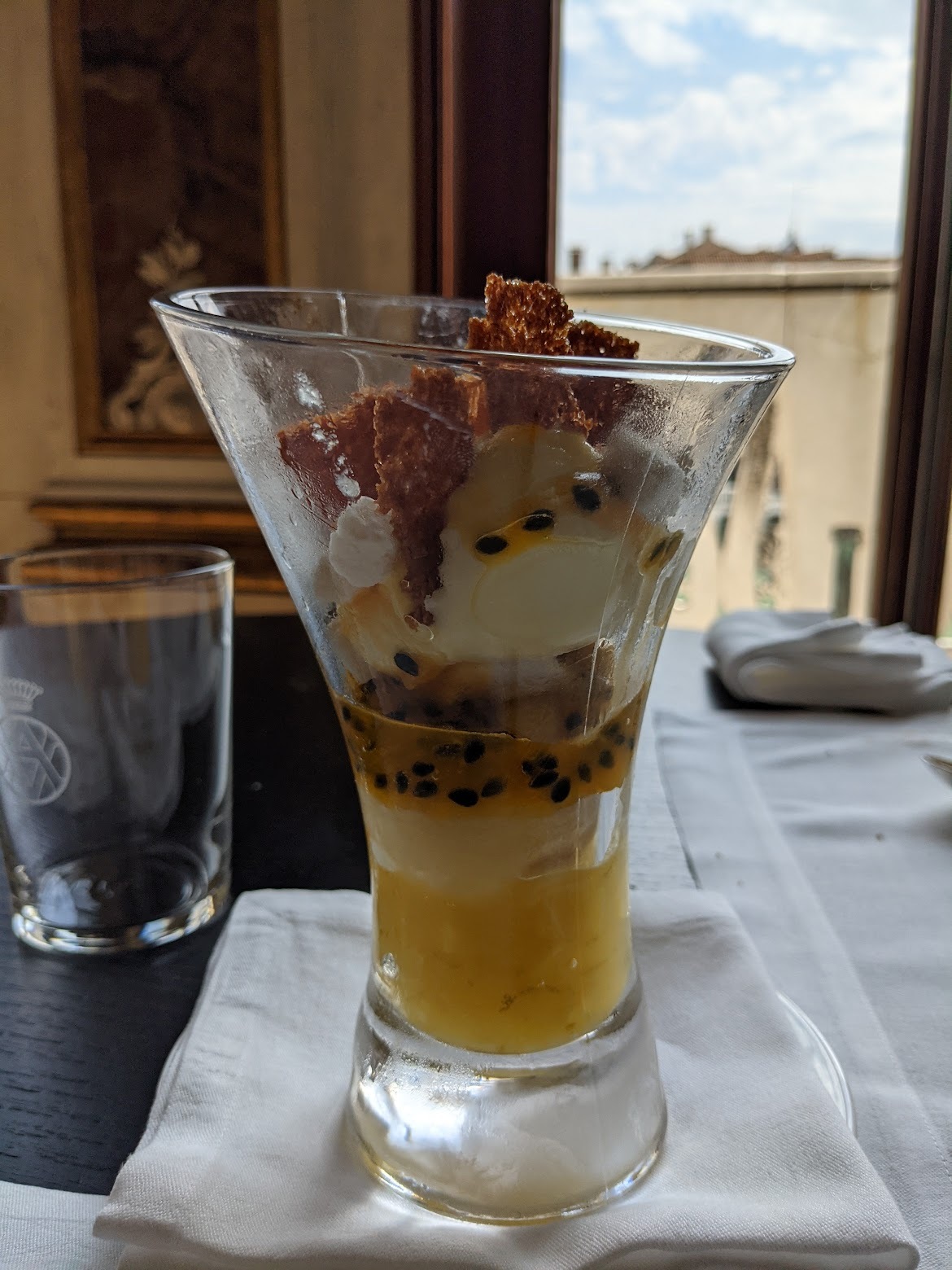 테라스가 아닌, 전망이 잘 보이는 실내 자리입니다. 테라스의 장점과 실내의 장점만 누릴 수 있게 설계한 것이죠. 보시는 것처럼 전망도 예술이에요. 여기 앉아서 아만의 최고급 파스타를 먹으면 베니스가 내 것이 된 듯한 기분마저 듭니다.