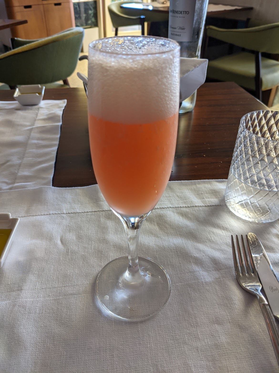 이 아이가 그 유럽 슈퍼 포스팅에서 언급했던 문제의 벨리니입니다. 한잔에 무려 20유로였어요. 물론 예쁜 벨리니 한잔이 있으면 사진 찍기 재미있긴 합니다만 굳이 추천드리지는 않을게요. 맛은 있습니다. 얼마나 맛있냐면요, 슈퍼에서 파는 5유로 벨리니랑 똑같이 맛있어요.