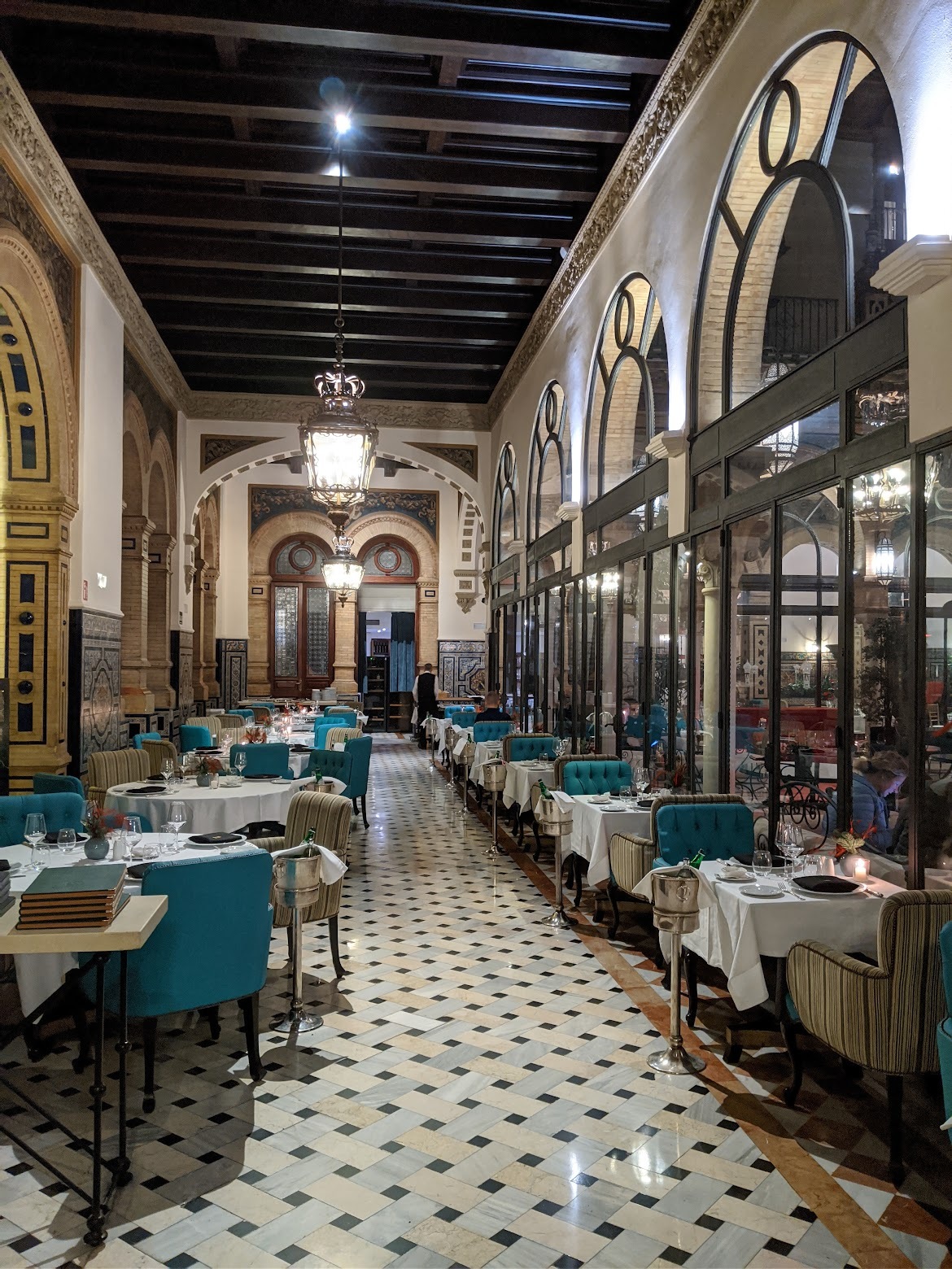 식사를 마치고 호텔로 돌아가는 길에 보니 크리스마스라도 관광객을 상대로 하는 식당들은 꽤 많이 열었더라고요. 하지만 사람이 너무 빽빽하게 몰려서 편안하게 식사를 즐길 분위기로 보이진 않았어요. 이래저래 크리스마스 저녁 만족스럽게 식사하고 온 곳입니다. 스페인 역사에 관심이 많으시거나 세비야에서 고급스러운 식당을 찾고 계신다면 추천입니다. 굳이 식사를 원하지 않으신다면 레알 알카사르 보고 나오시는 길에 호텔 바에 들러 간단히 음료수만 즐기시고 한번 둘러보시는 것도 좋을 것 같아요.