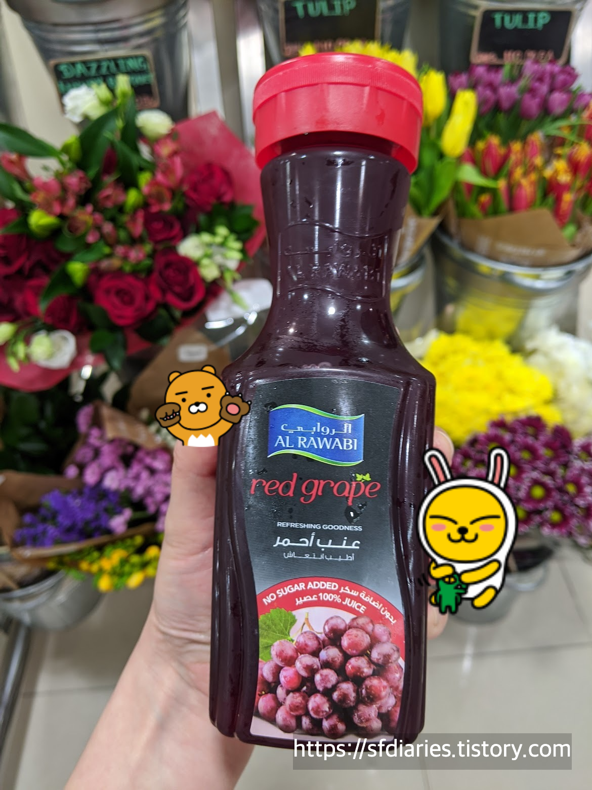 카페를 들어갈 수도 있었지만 앉아서 쉴 수 있는 고급진 소파가 몰 곳곳에 있어서 슈퍼로 갔습니다. 사실 음료수 종류는 슈퍼가 훨씬 많고 재미있으니까요. 제가 언제 또 중동의 슈퍼를 가보겠습니까. 슈퍼도 굉장히 크고 고급 식재료를 많이 팔아요. 현지인들도 오지만 두바이에 사는 외국인들도 많이 오는 느낌이었어요. 현지 제품 뿐만 아니라 수입 식료품이 많이 보였습니다. 유럽의 웬만한 슈퍼들을 다 합쳐놓은 느낌까지 났어요. 여기도 신용카드 사용 가능했습니다. 저희가 사마신 주스가 2.9 UAE 디르함이니 채 1유로도 안 되는 가격이군요.