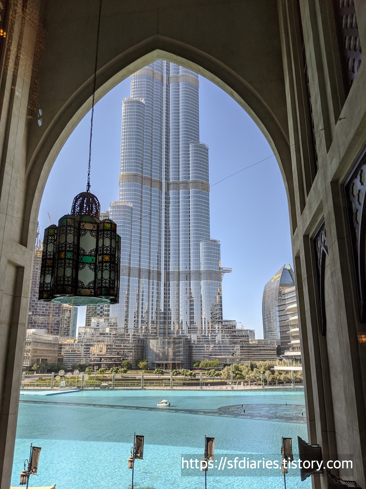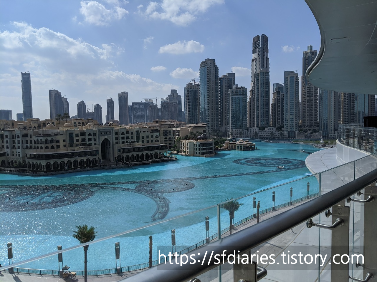 여기서 가장 크다는 두바이몰에 도착하자마자 일단 찾아둔 식당으로 갔어요. 아마 오전 11시쯤 들어간 것 같습니다. 아무래도 비행기를 타면 피곤하고 배도 고파지니까요. 터키에 다녀온 이후 중동 음식에 흥미를 느끼고 있던 터라 기대가 컸습니다. 예상대로 굉장히 맛있었어요. 두바이 몰에 가신다면 여기 추천입니다. Logma라는 캐쥬얼한 곳이고 전망도 좋습니다. 가격은 1인당 15유로 이하 정도로 생각하시면 될 것 같아요. 두바이 몰에서 이 정도면 저렴한 축에 속해요.