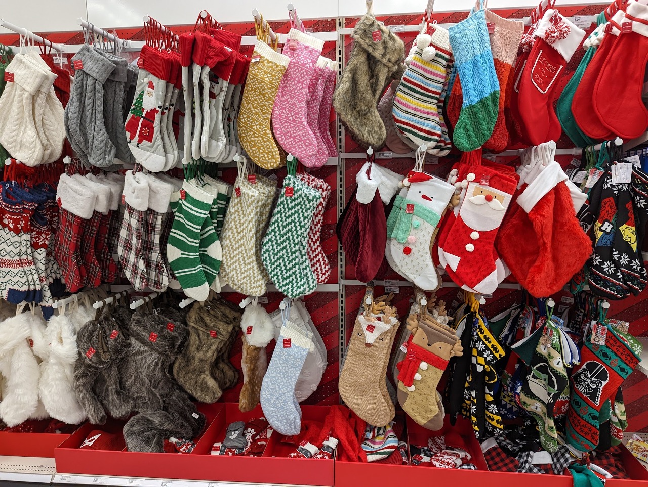 크리스마스 즈음에 미국 오시면 커다란 크리스마스 양말 사가시는 것을 추천드릴게요. 가져가시기도 가볍고 한국에서는 구하기 쉽지 않으실 것 같아요. 종류도 엄청 다양합니다.