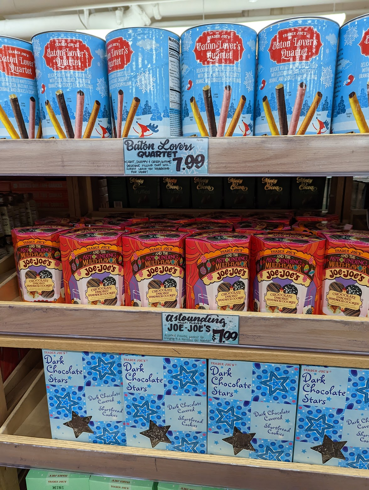 대망의 트레이더조스입니다. 캘리포니아에서 특히 인기있는 슈퍼에요. 가격도 저렴하고 오가닉 제품이나 키토 제품, 비건 제품 등이 다양하게 구비되어 있어 건강에 관심있는 캘리 사람들 구미에 딱 맞는 가게입니다. 체인이지만 정감있는 인테리어와 친절한 직원들도 한몫 하는 것 같아요. 계절에 맞춰 신제품이 계속 출시되고 언제 가도 사람이 북적입니다. 인기 제품들은 매진도 자주 되는 편이라 맛있어 보이면 그냥 사야해요. 크리스마스에는 페퍼민트 조조스 쿠키(오레오 유사제품)와 초콜렛을 입힌 버전도 출시되었네요.