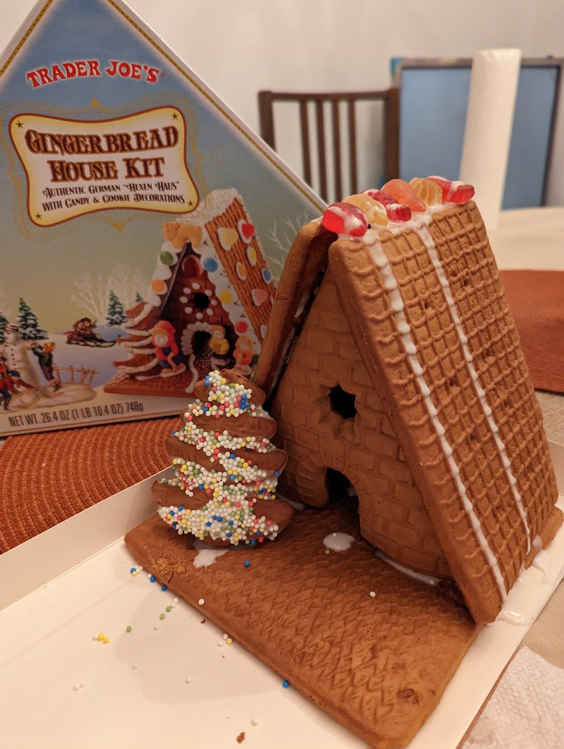 진저브레드 과자를 펼쳐 놓은 모습입니다. 8달러 주고 이 정도면 납득이 가는 구성이라고 생각됩니다. 저 과자를 모양에 맞춰서, 조립이 가능하게끔 제대로 굽는 것 자체에 엄청난 기술이 요구될테니까요. 저는 지난주에 이미 진저브레드 쿠키를 한번 구워놔서 굳이 먹지는 않았고요, 매년 트레이더 조스의 키트를 사서 아이와 진저브레드 하우스를 만드는 지인의 말로는 맛있다고 합니다.